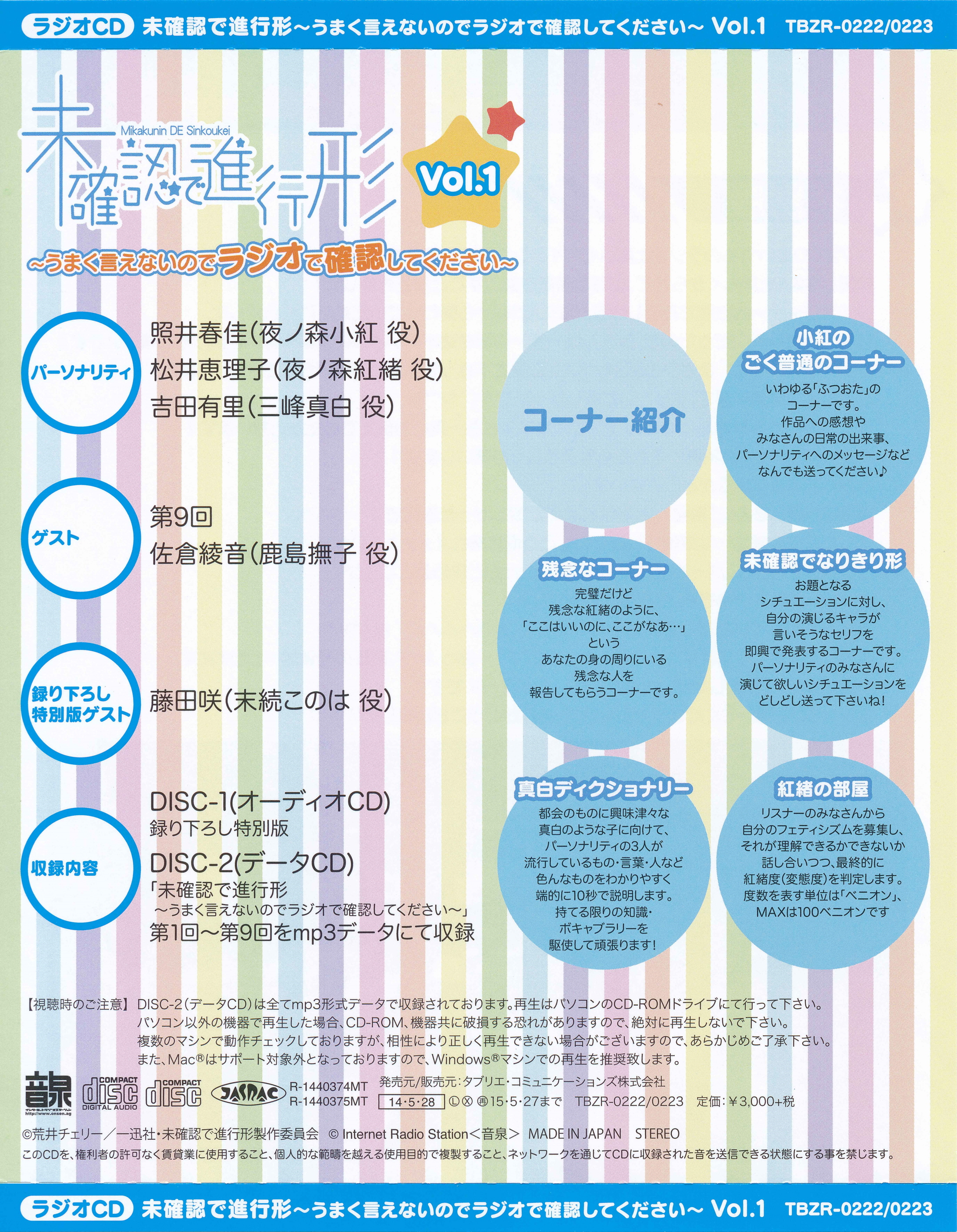 Disc 2: mp3 data for #1~#9 of Mikakunin DE Sinkoukei ~Umaku Ienai node Radio de Kakunin Shite Kudasai~