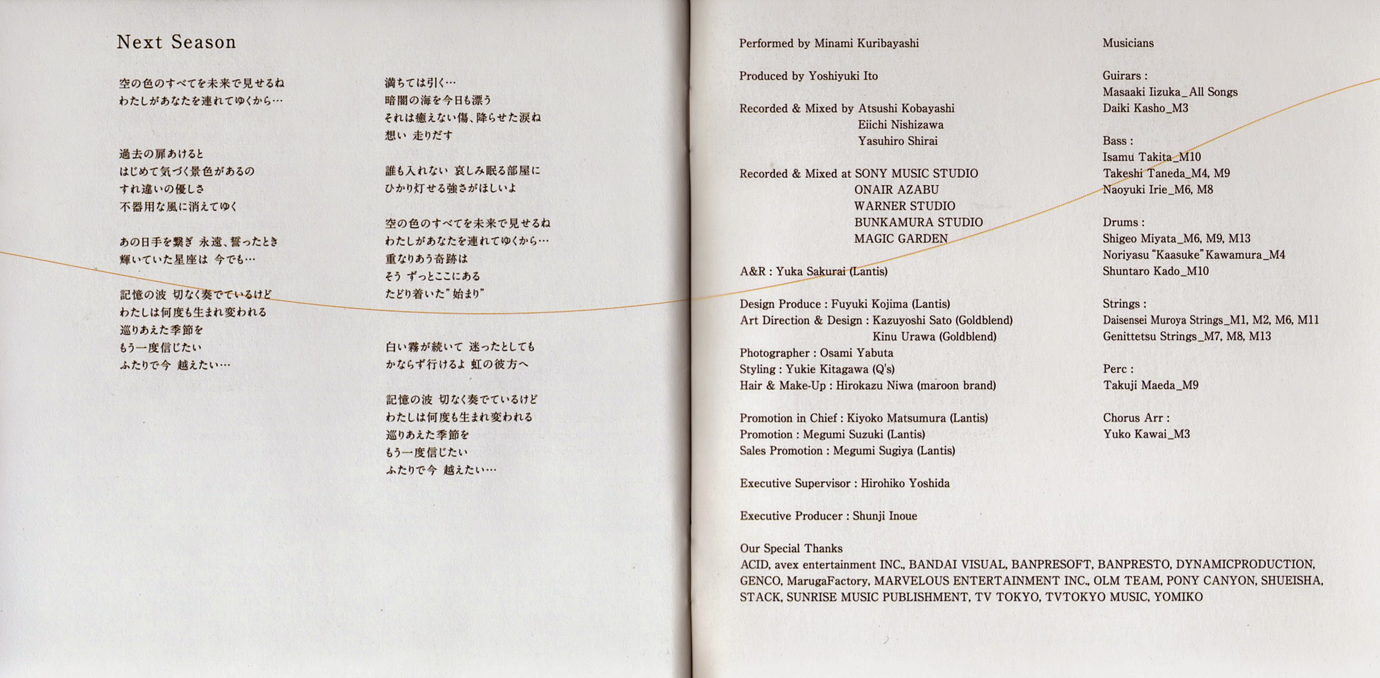 Recorded & Mixed at SONY MUSIC STUDIO, ON AIR AZABU, WARNER STUDIO
