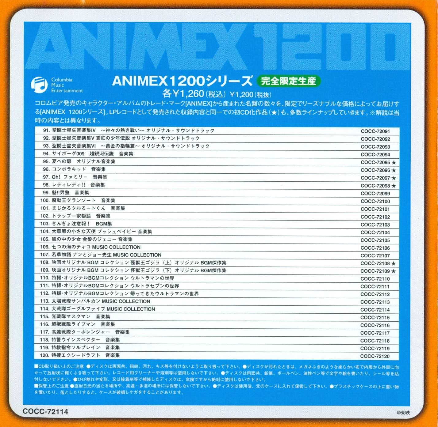 Limited reissued album (5000 pieces) as disc number "114" of Columbia "ANIMEX 1200" series.