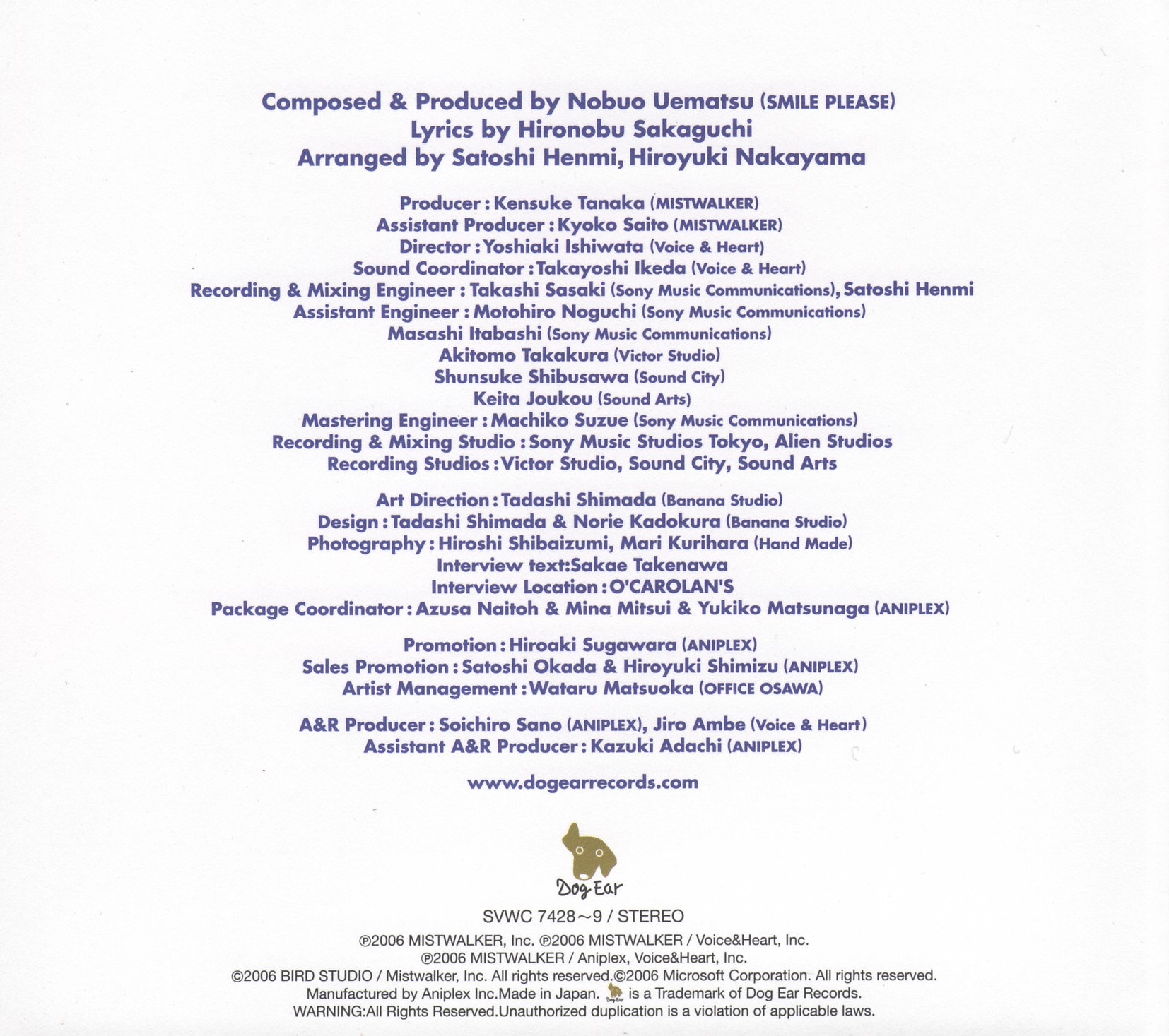 Lyrics by Hironobu Sakaguchi