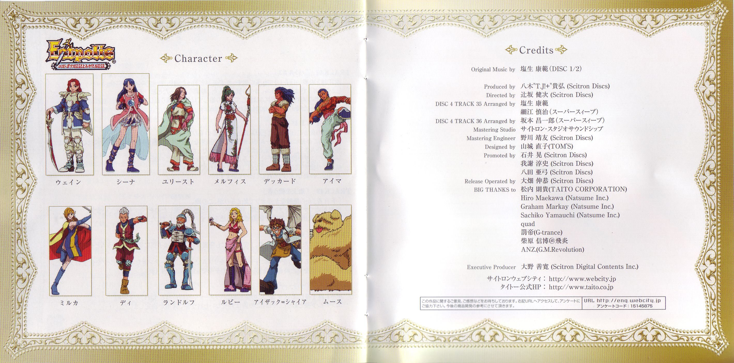Contains remastered soundtracks for Lufia and Lufia 2 (Super NES), plus the Game Boy Color game, Lufia: The Legend Returns. Arranged track(s) included. The first print comes with Stickers.