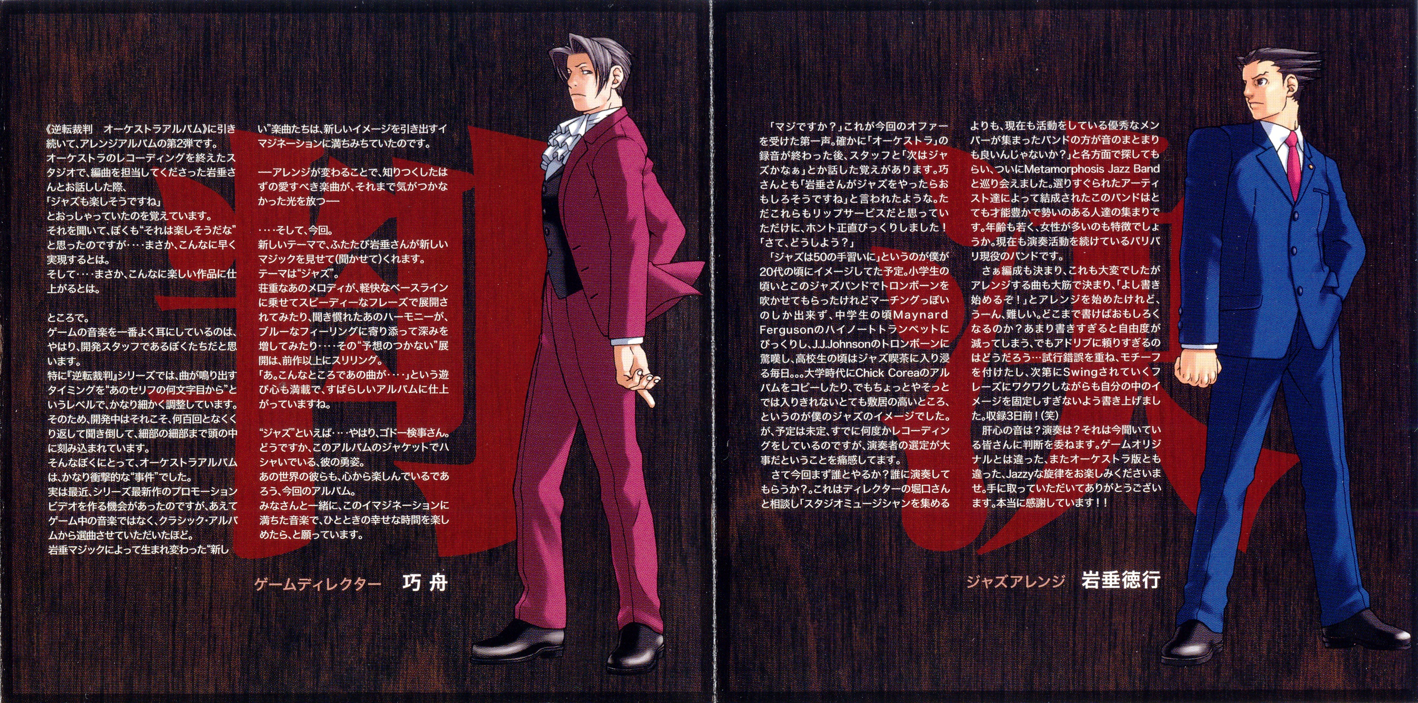 Special Thanks: Shu Takumi (Capcom), Toshihiko Horiyama (Capcom), Mitsuru Endo (Capcom), Takeshi Yamazaki (Capcom), Gyakuten Saiban Research & Development Staff, All Capcom Staff