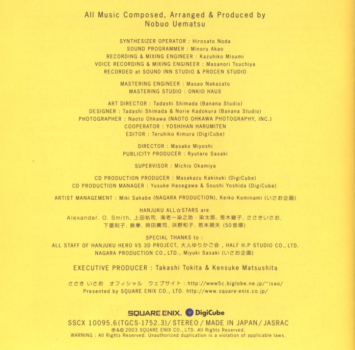 Vocals: HANJUKU ALL☆STARS / Lyrics: Takashi Tokita