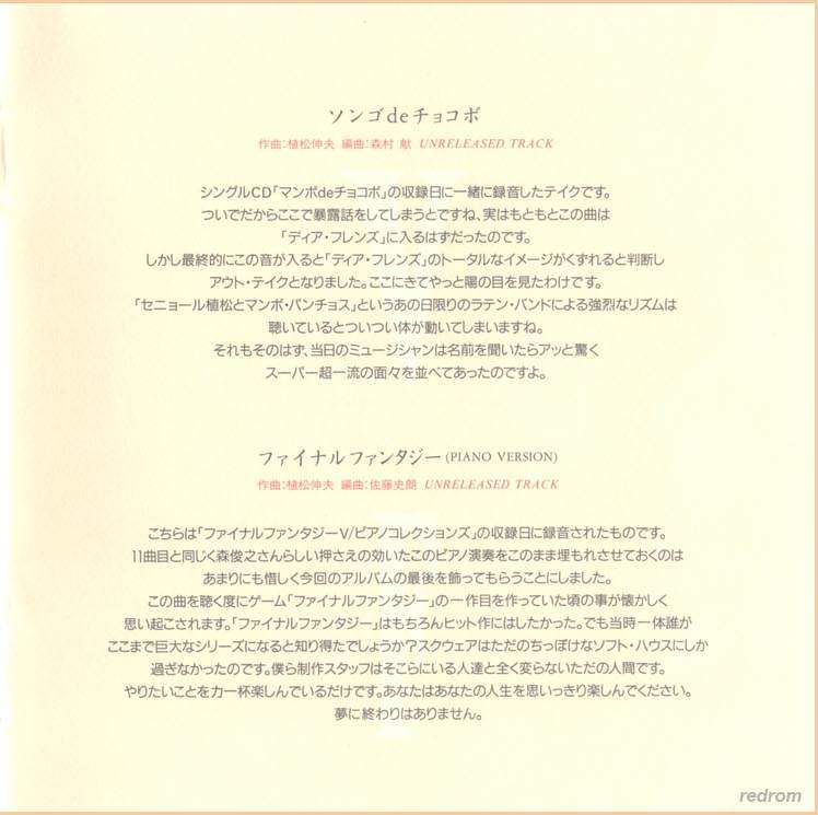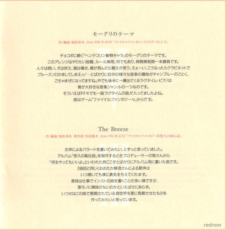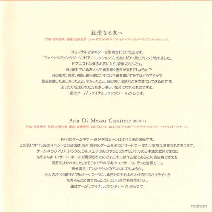 Tracks 4, 7, 10, 15: from Final Fantasy V Dear Friends (N30D-017)