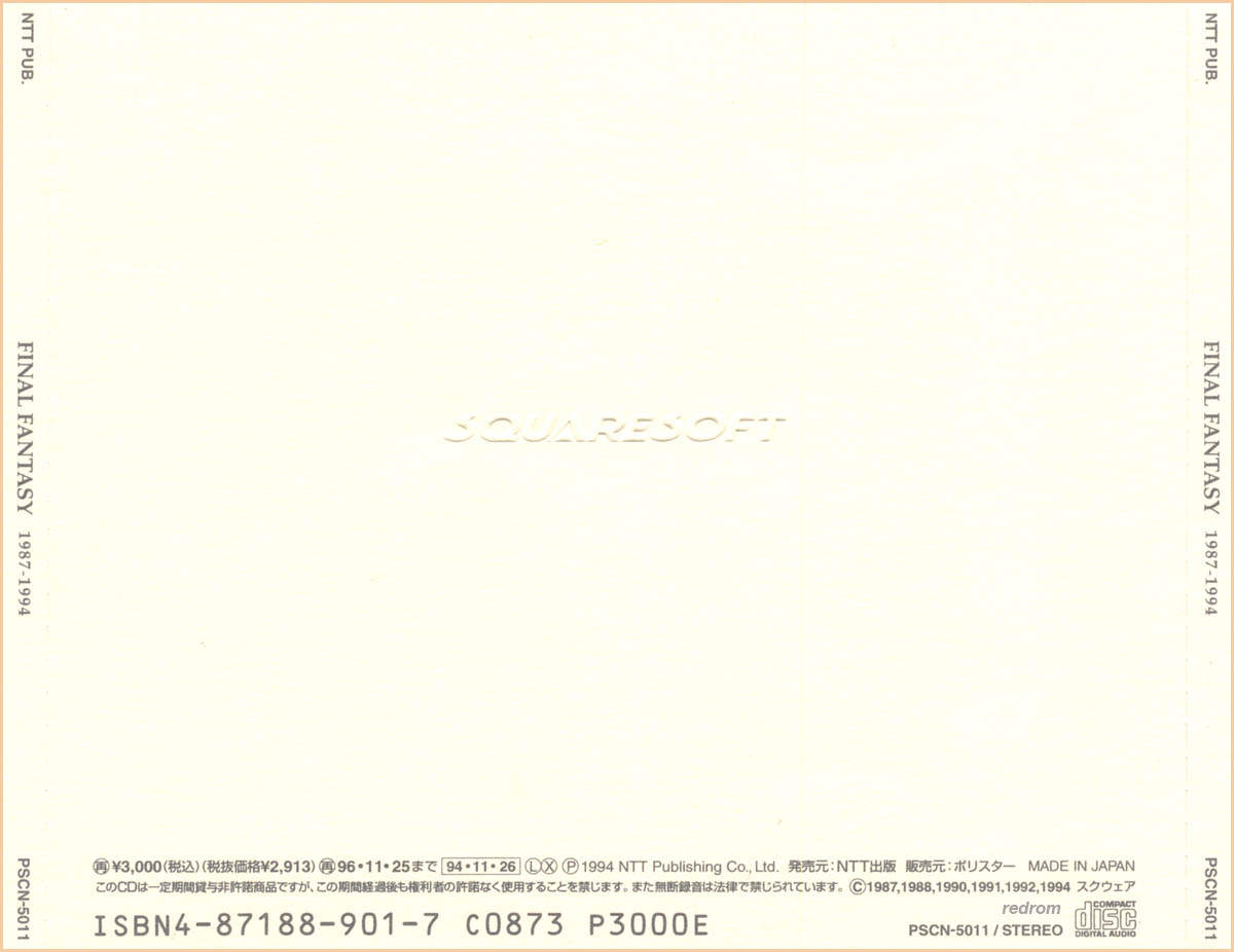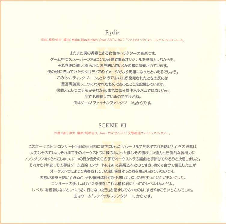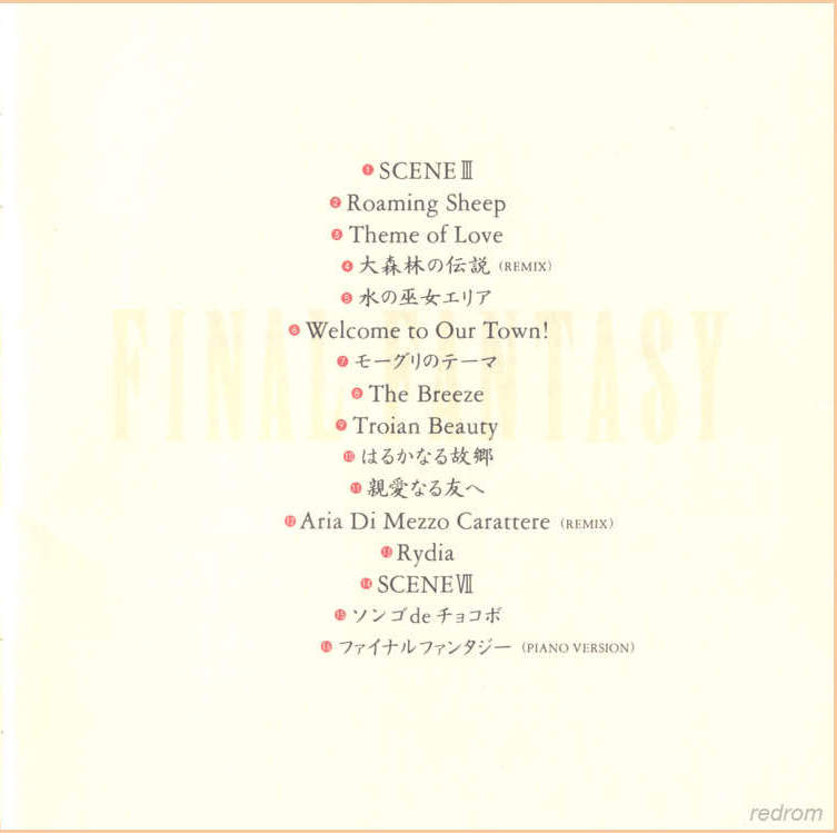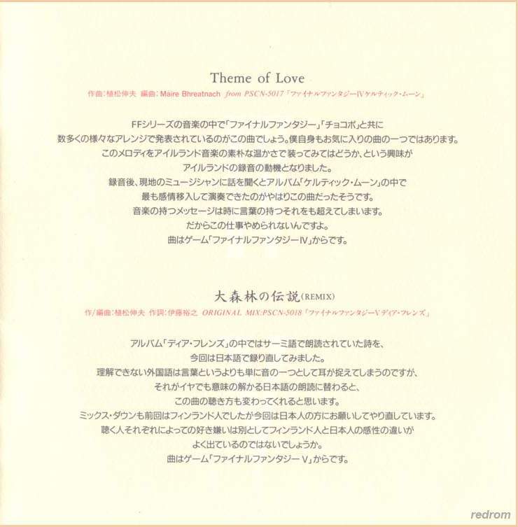 Tracks 3, 6, 9, 13: from Final Fantasy IV Celtic Moon (N30D-006)