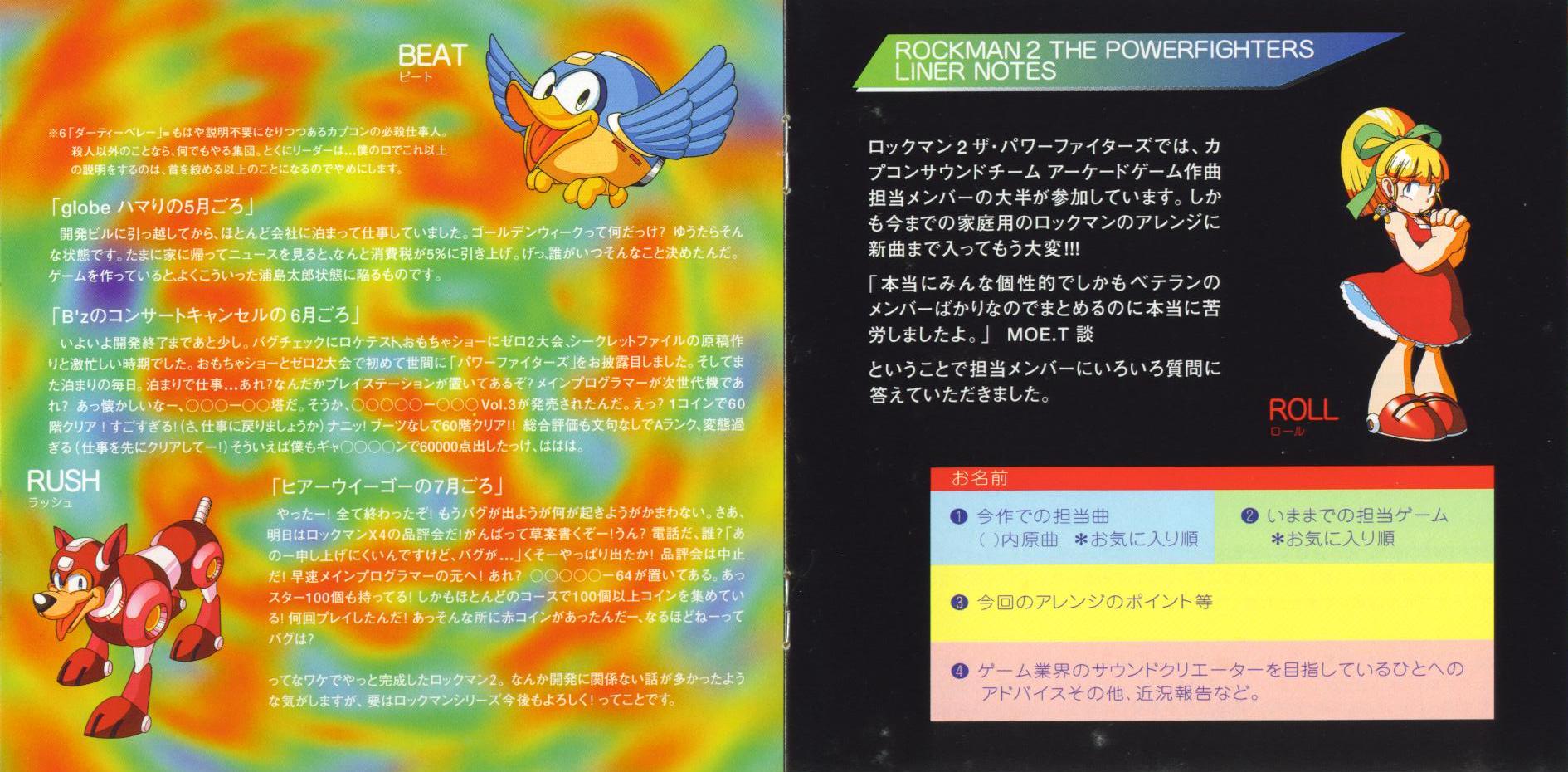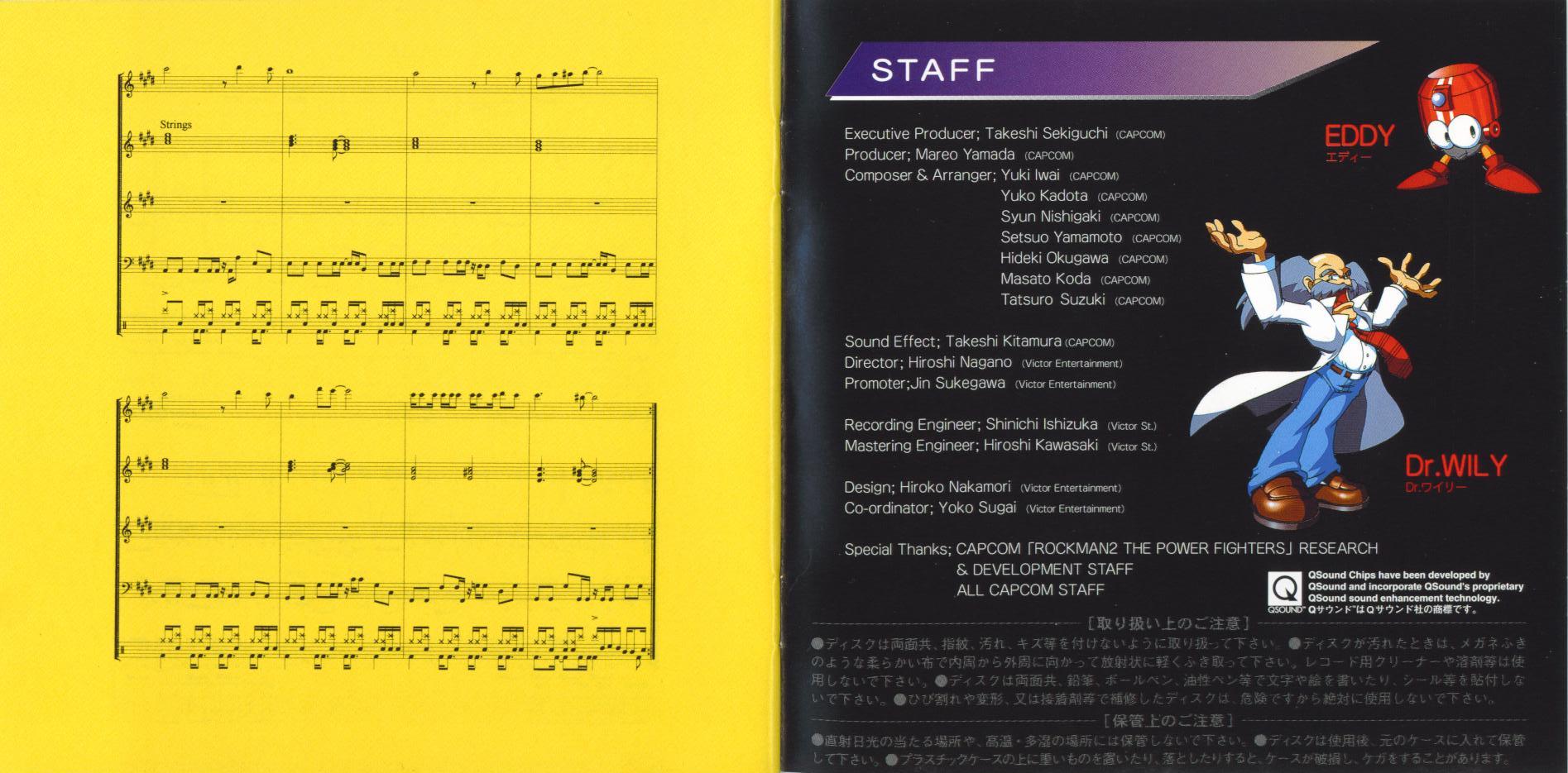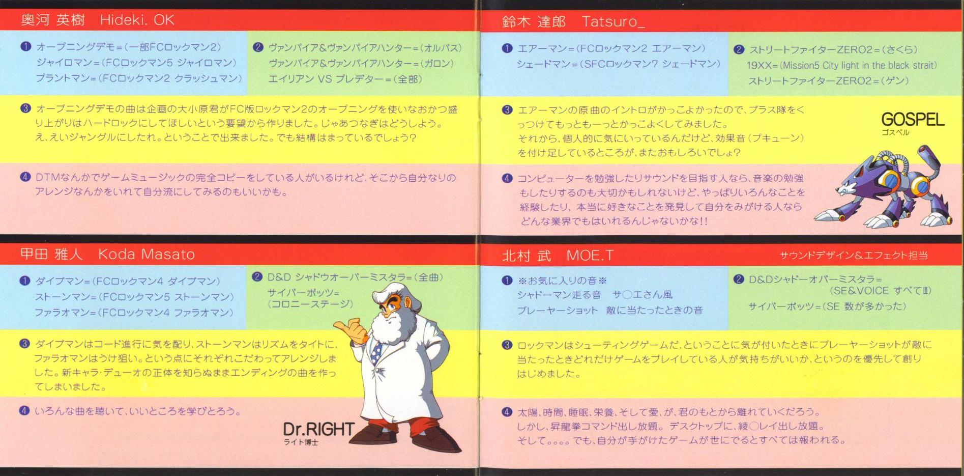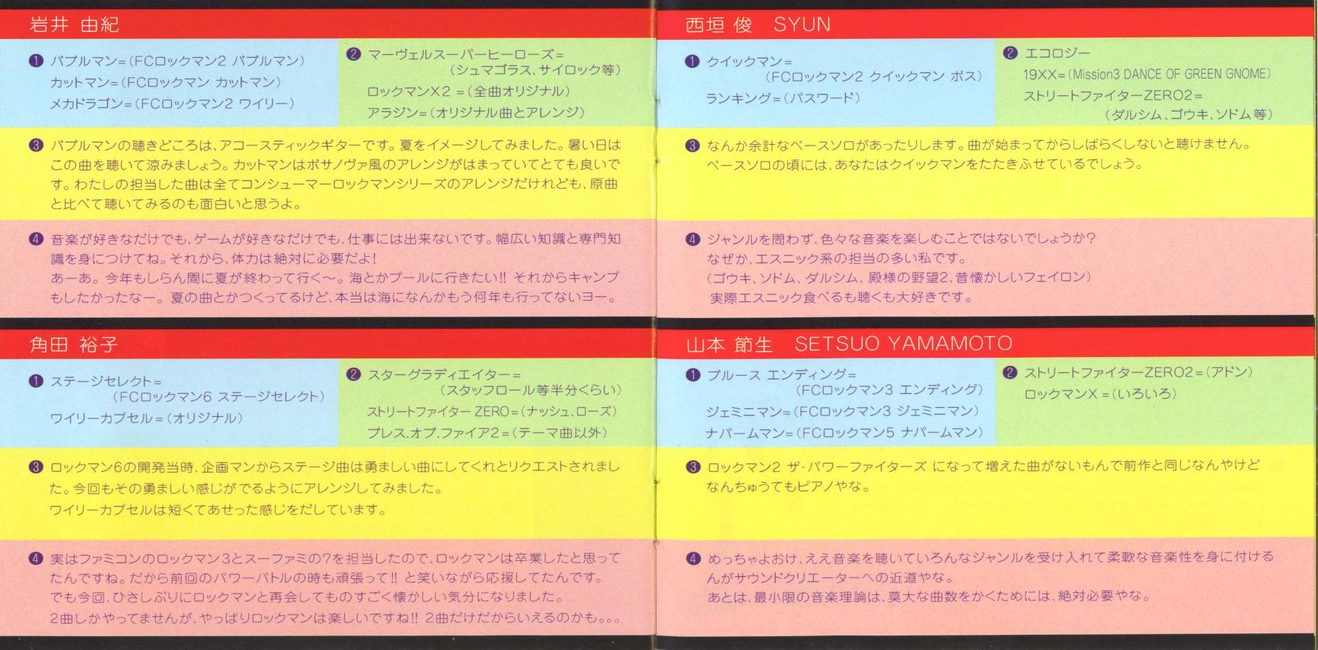 Setsuo Yamamoto, Hideki Okugawa (2, 4, 5, 8-11, 16, 19, 21-23, 28, 29, 32, 34, 35, 38, 39, 41) [Returning tracks from Rockman: The Power Battle]