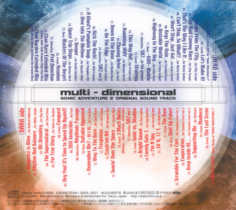 SONIC ADVENTURE 2 ORIGINAL SOUND TRACK multi-dimensional