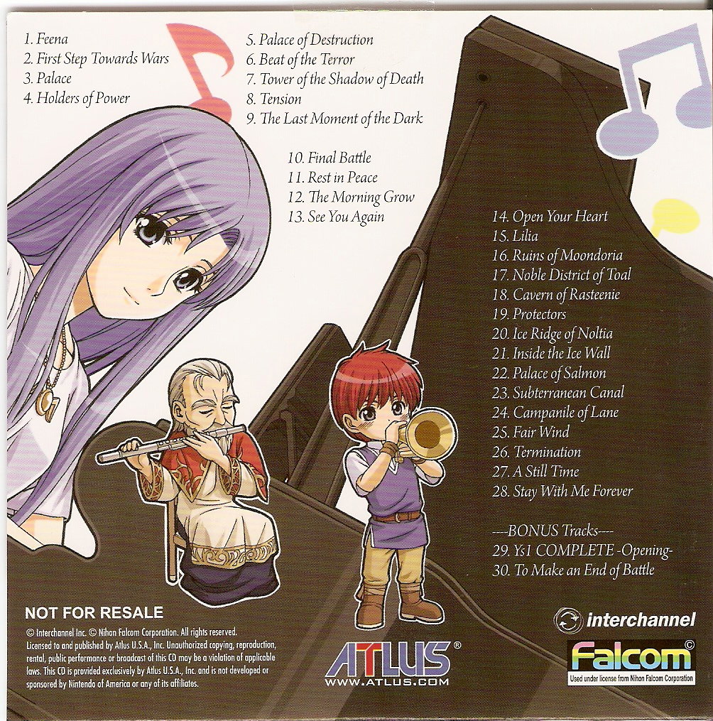 Bonus soundtrack CD included with the game. The CD contains music from the first two Ys Games.