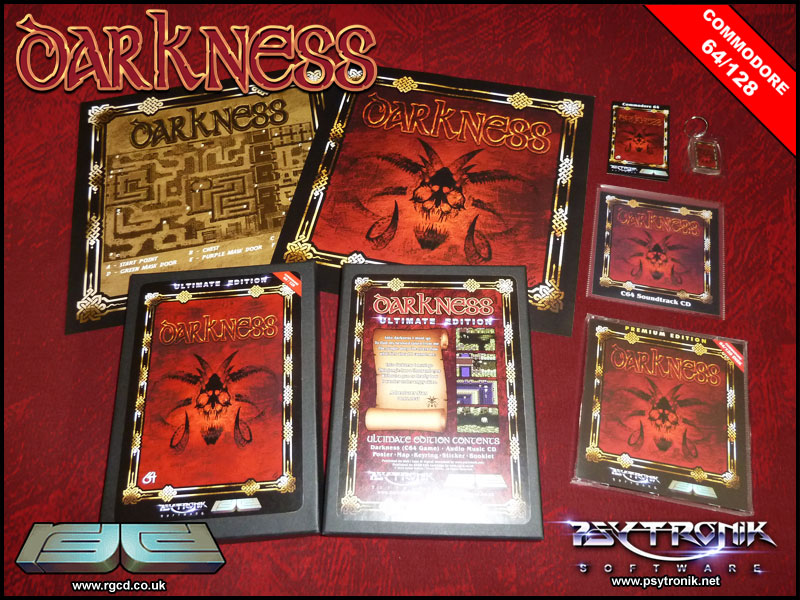 Comes with the Ultimate Edition version of the game "Darkness" for C64, released by Psytronik Software.