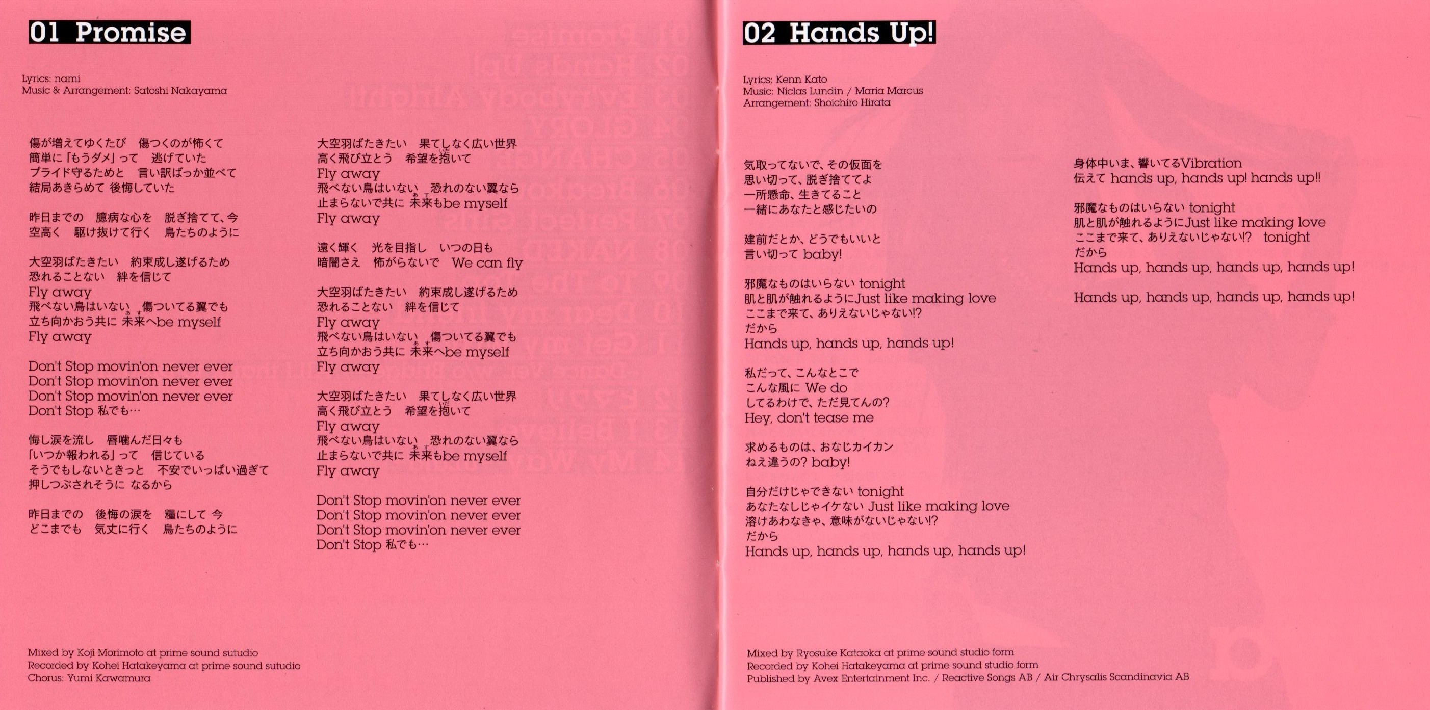 Published by Avex Entertainment Inc./Reactive Songs AB/Air Chrysalis Scandinavia AB