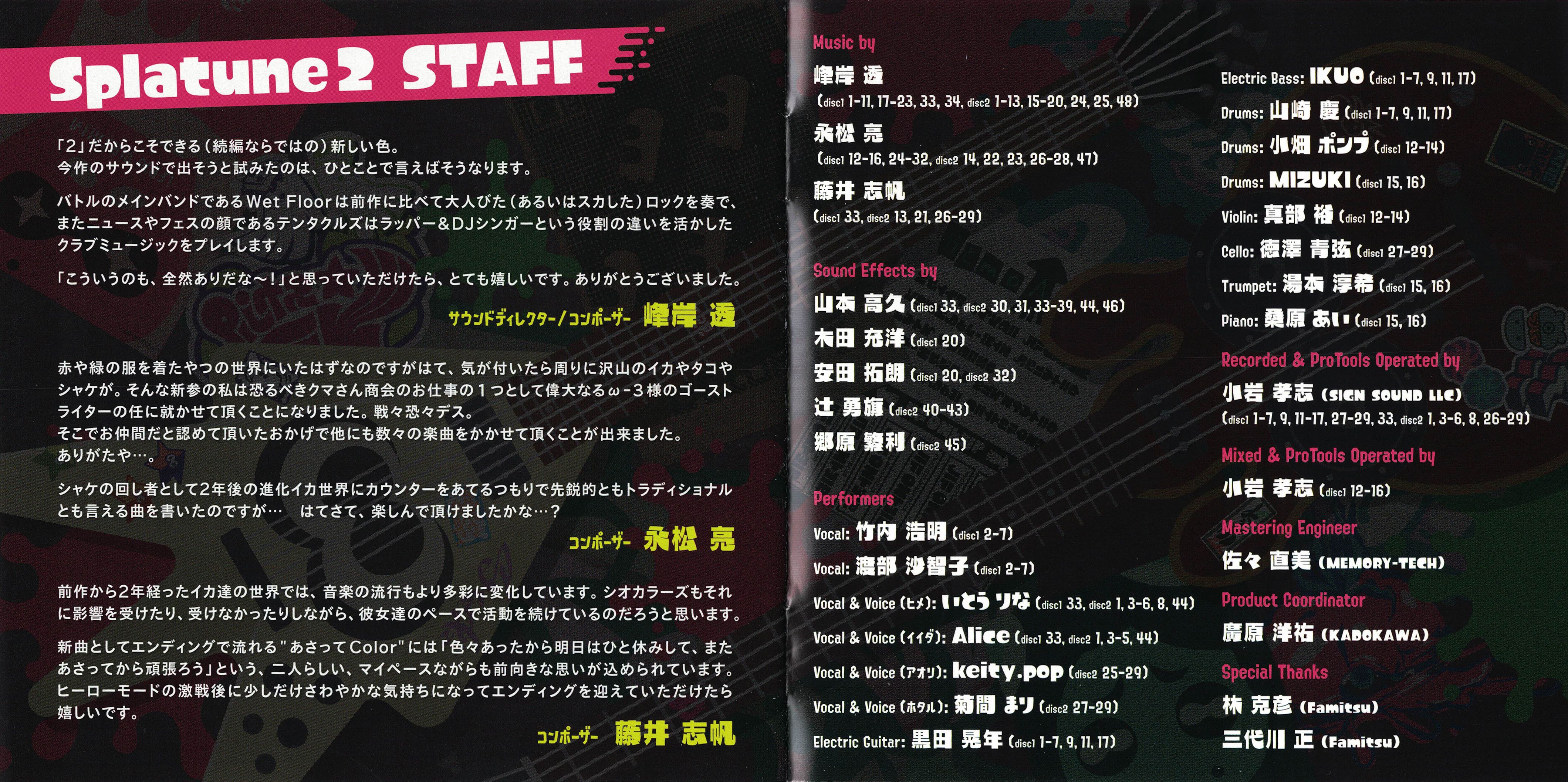 Инженер звукозаписи и оператор ProTools Takashi Koiwa (SIGN SOUND LLC): 1.01~7, 1.09, 1.11~17, 1.27~29, 1.33, 2.01, 2.03~6, 2.08, 2.26~29