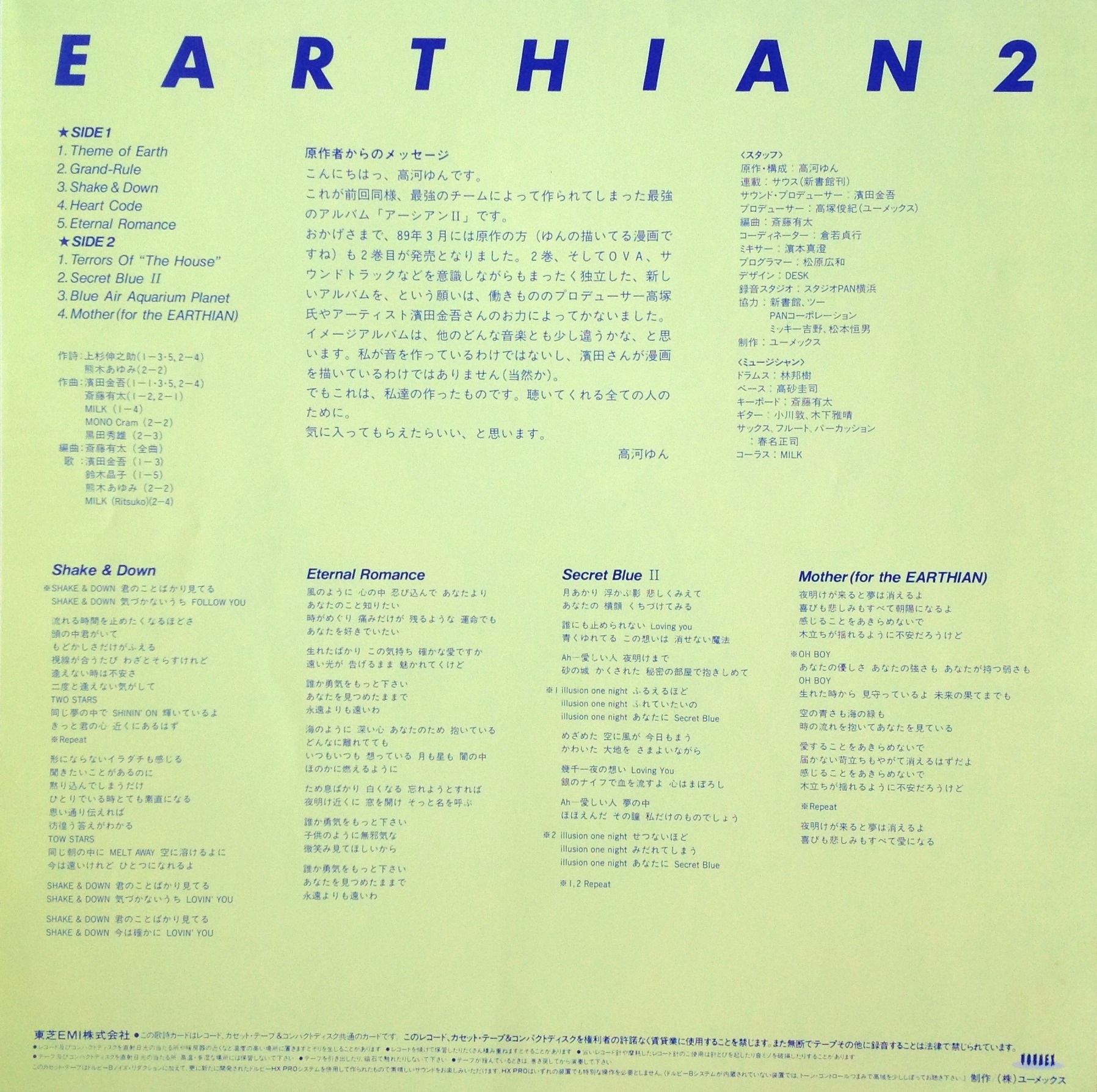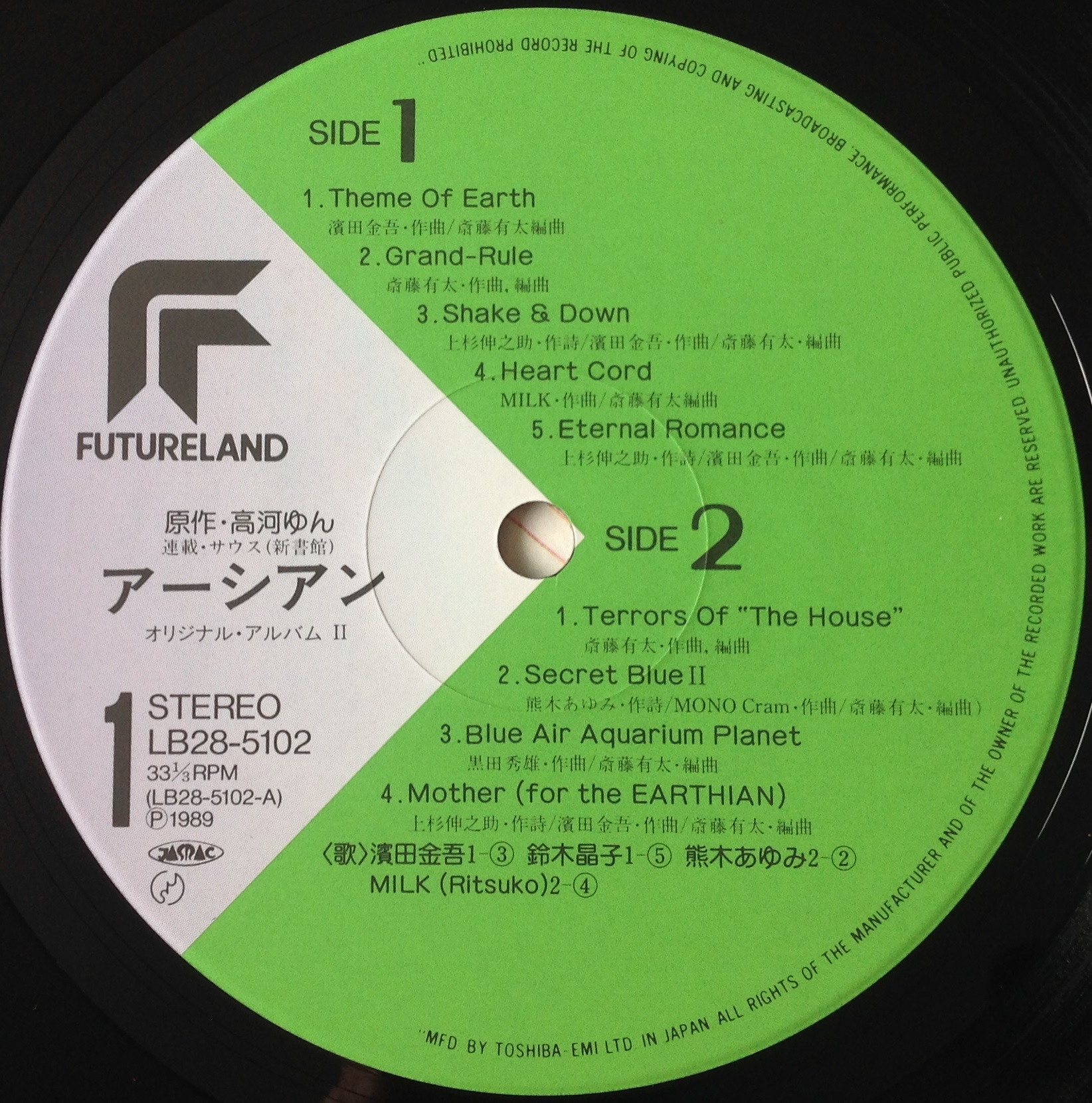 Track 09 is used as ending theme for the 1st Earthian OVA released later in 1989.
