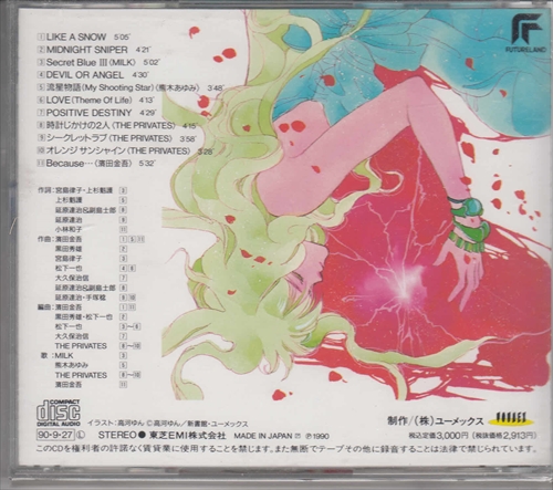 Some tracks are used in the Earthian II OVA released in 1990: tracks 08 & 09 as insert songs and track 11 as ending theme.