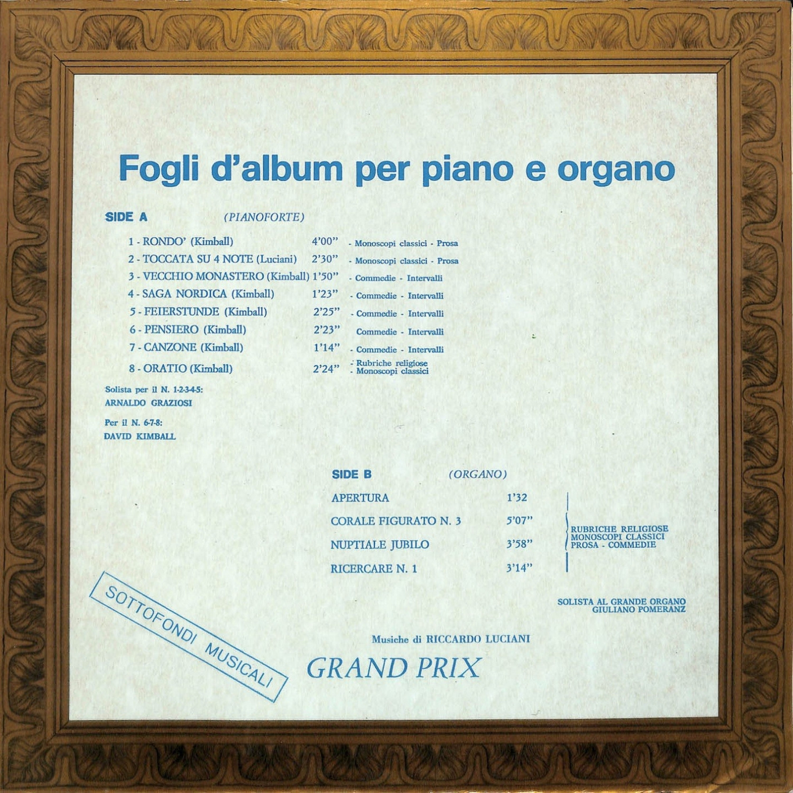 Ниже можно послушать бесплатное онлайн превью треков из саундтрека Fogli d’album per piano e organo.