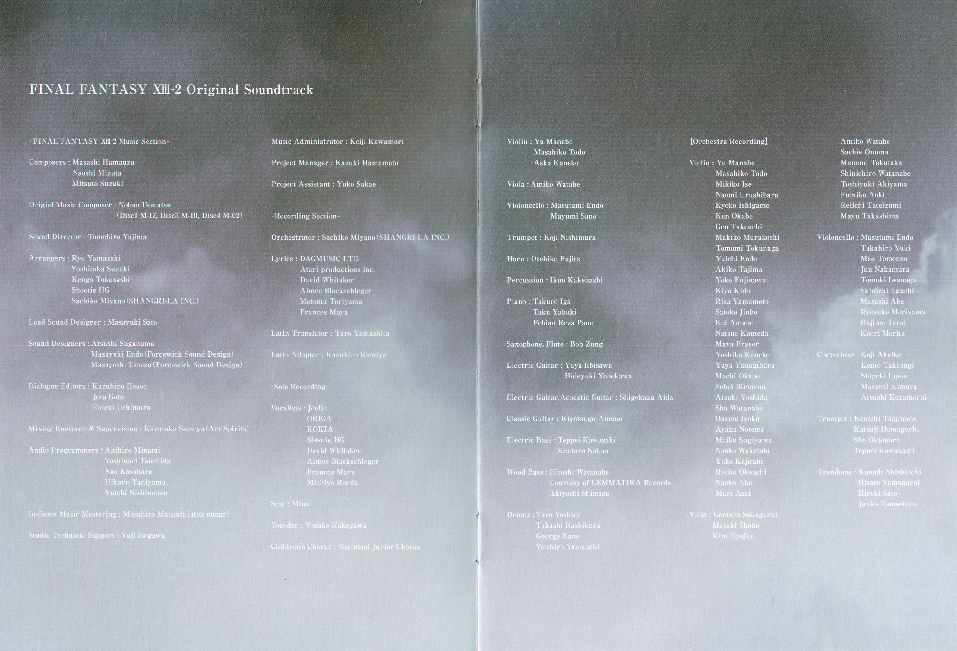 | Аранжировка | Кэнго Токусаси / Масаси Хамаудзу / Мицуто Судзуки / Наоси Мидзута / Рё Ямадзаки / Сатико Мияно / Шон МакФерсон / Ёситака Судзуки |
