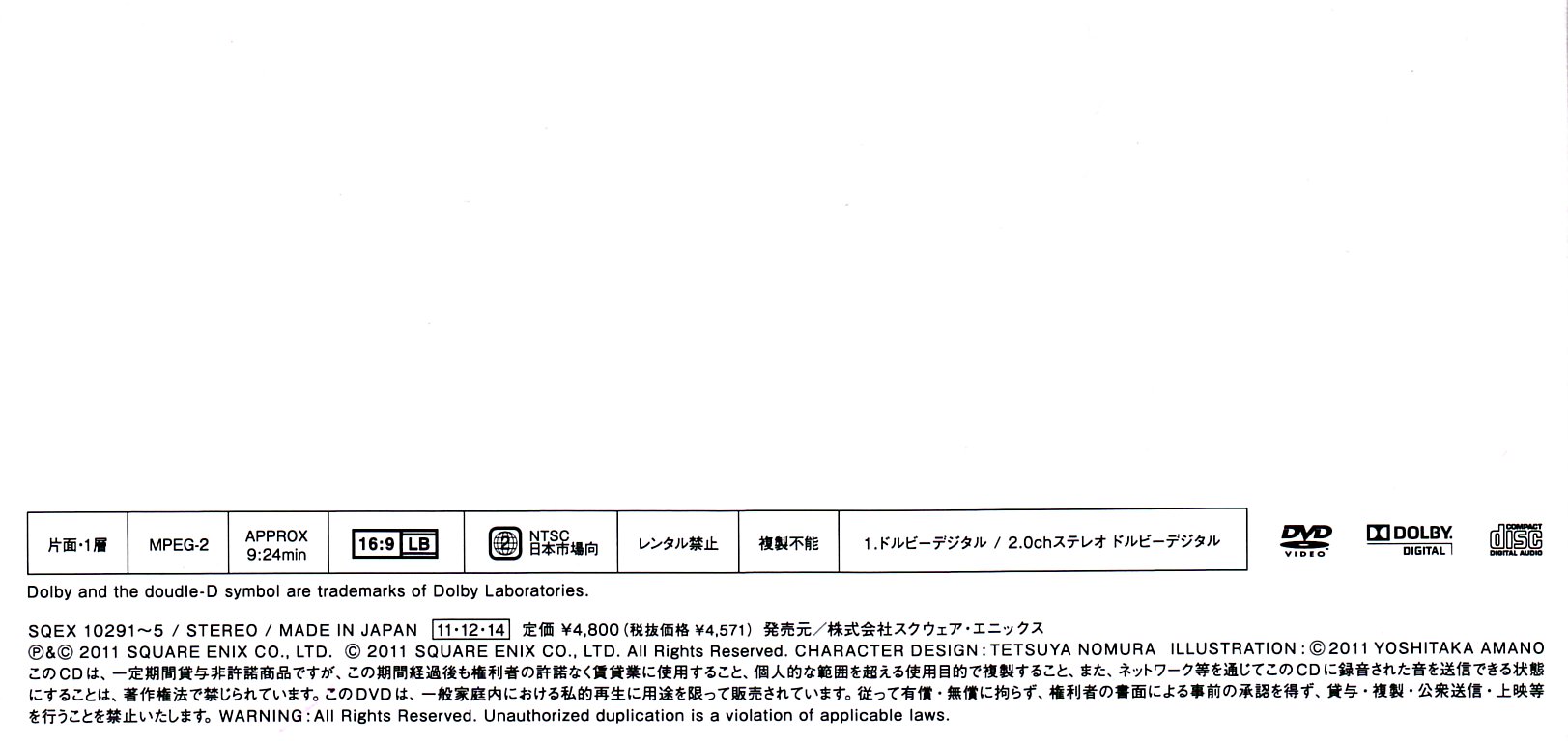 | Номер в каталоге | SQEX-10291~5 |