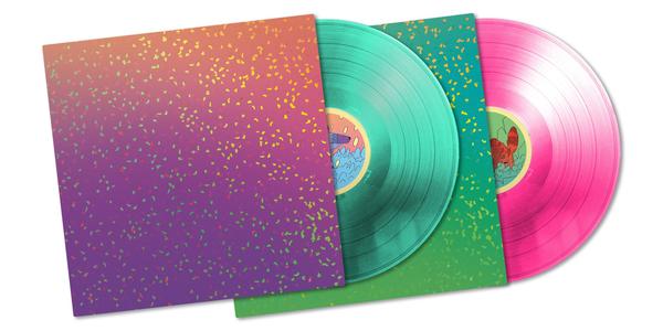 2LP on "sweet and sour" pink and green translucent vinyl.