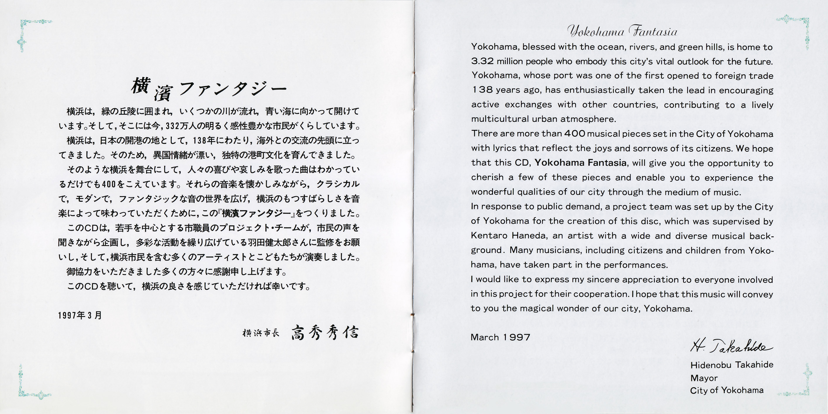 横浜市歌/Yokohama Shika Lyrics: Rintaro Mori/森林太郎 (Ogai/鷗外) Composed by: Yoshie Minami/南能衛
