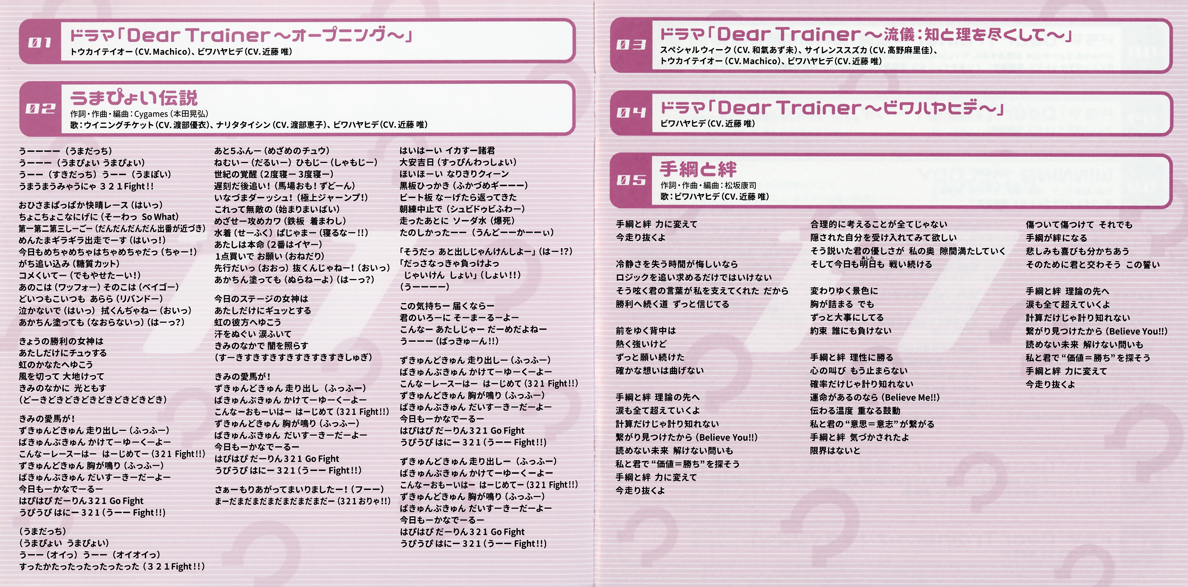 Авторский состав: Special Week (CV: Azumi Waki), Silence Suzuka (CV: Marika Kouno), Tokai Teio (CV: Machico), Winning Ticket (CV: Yui Watanabe), Narita Taishin (CV: Keiko Watanabe), Biwa Hayahide (CV: Yui Kondou)