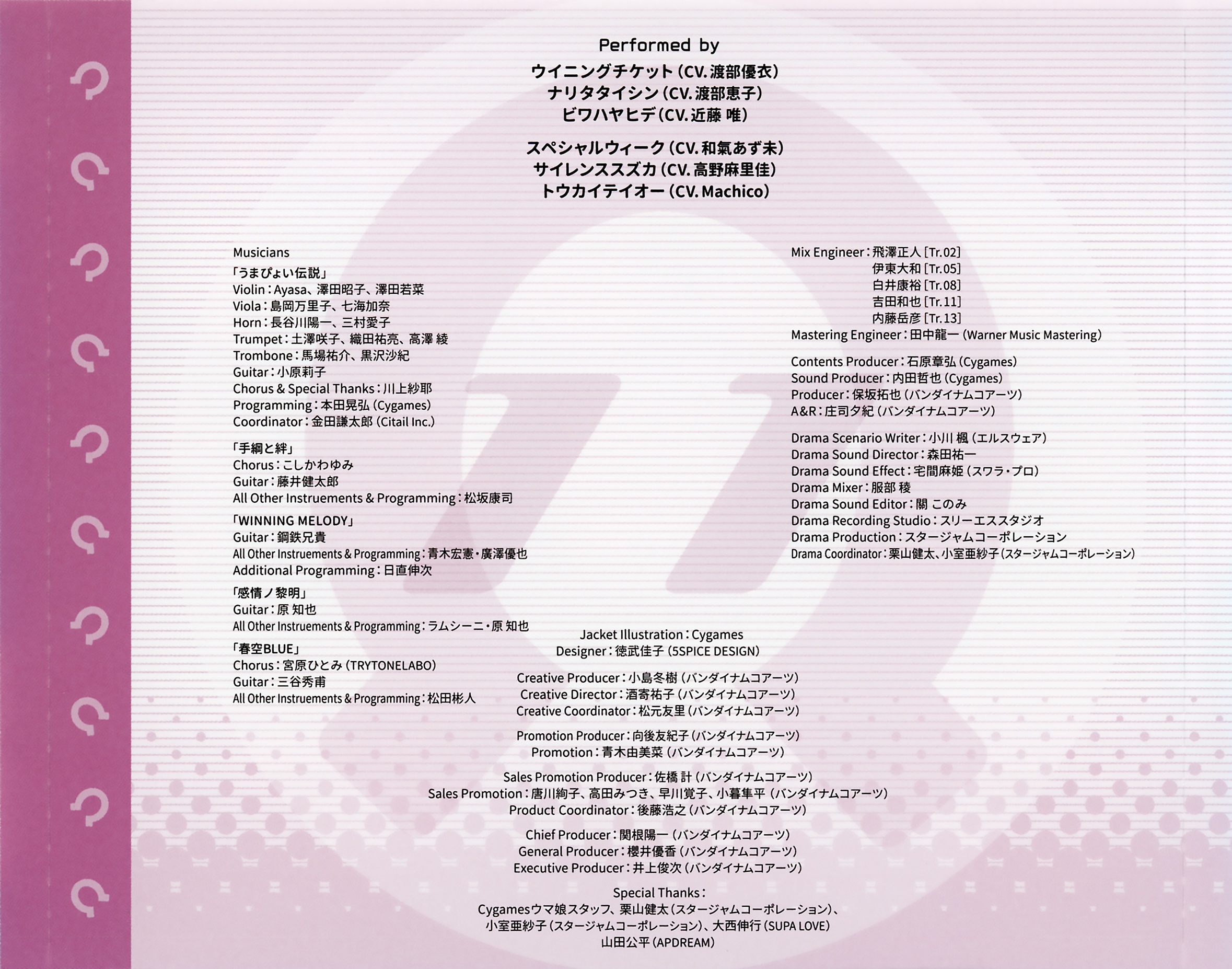 Инженер по сведению: Masahito Tobisawa [Tr.02], Yamato Ito [Tr.05], Yasuhiro Shirai [Tr.08], Kazuya Yoshida [Tr.11], Takehiko Naito [Tr.13]