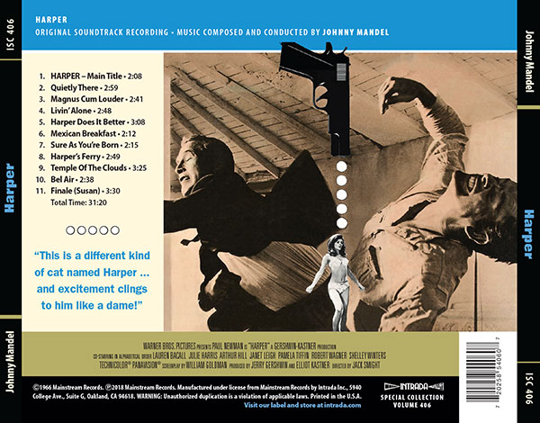 Лейбл Intrada издал саундтрек к фильму «Харпер». Альбом можно купить на этом сайте. Цена: 15,99$. Режиссёром ленты 1966 года является Джек Смайт. Частного детектива из Лос-Анджелеса по имени Лью Харпер нанимает циничная богатая дама для поисков своего пропавшего мужа. Расследование сталкивает детектива с самыми сомнительными персонажами... Показать
