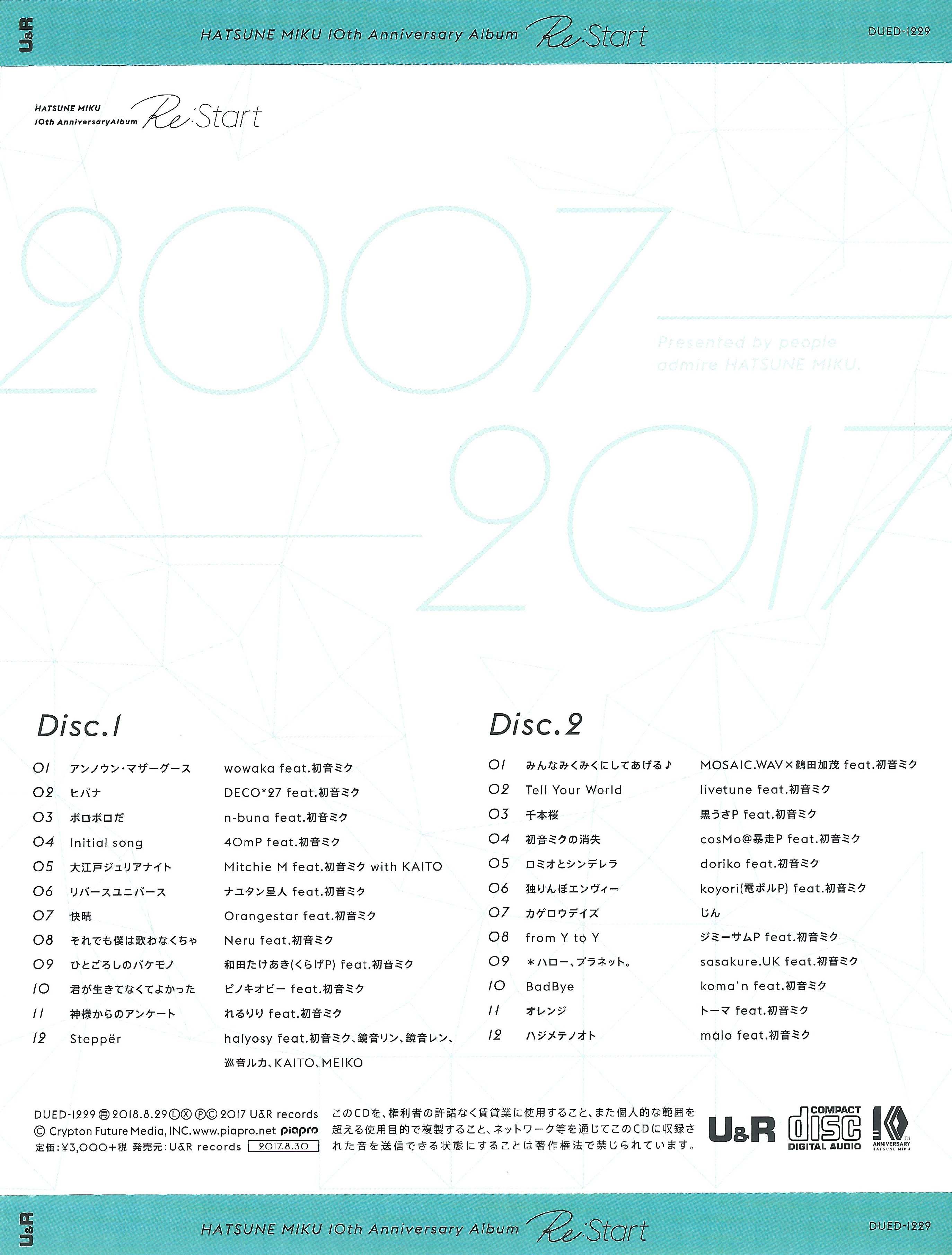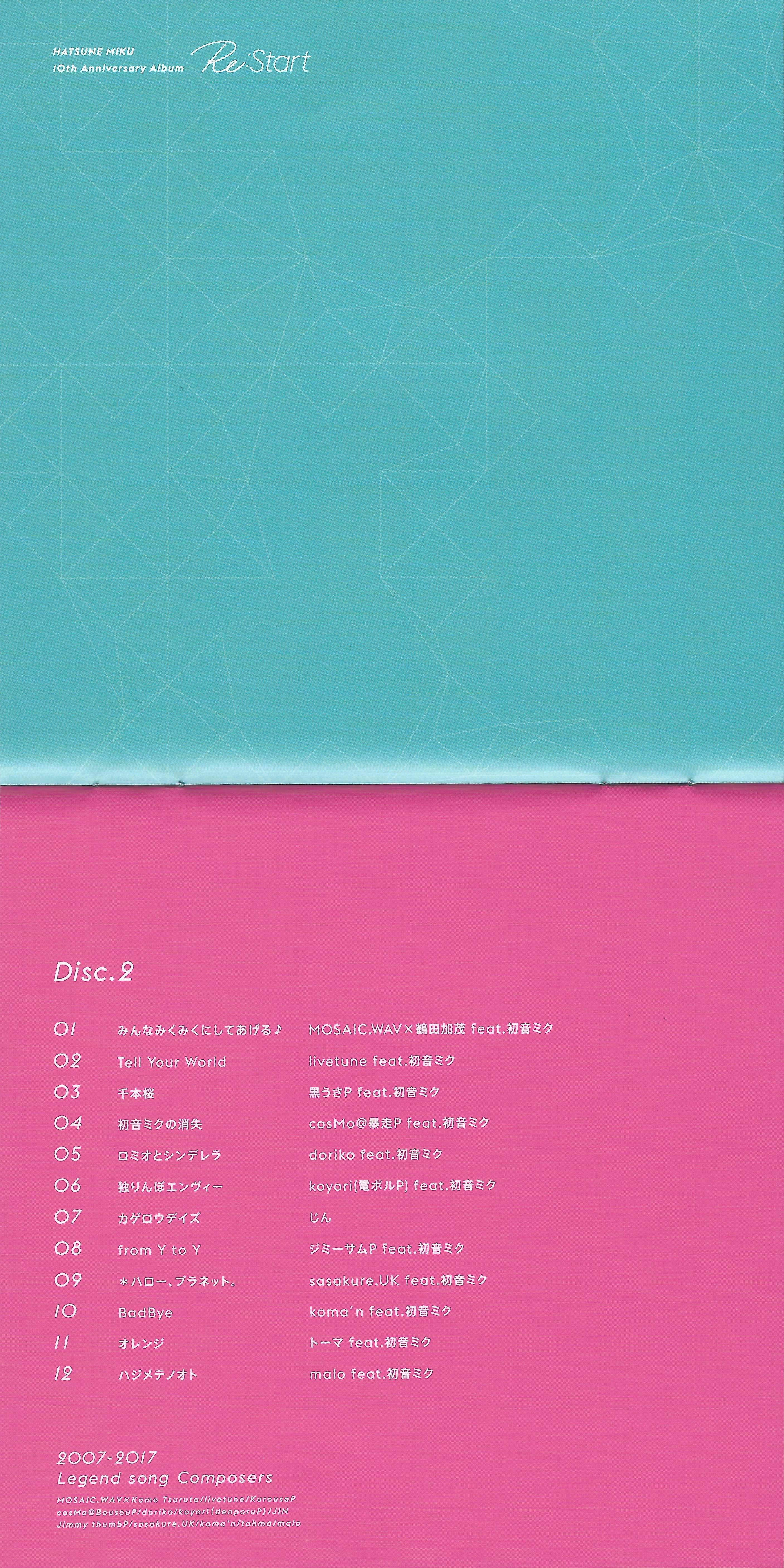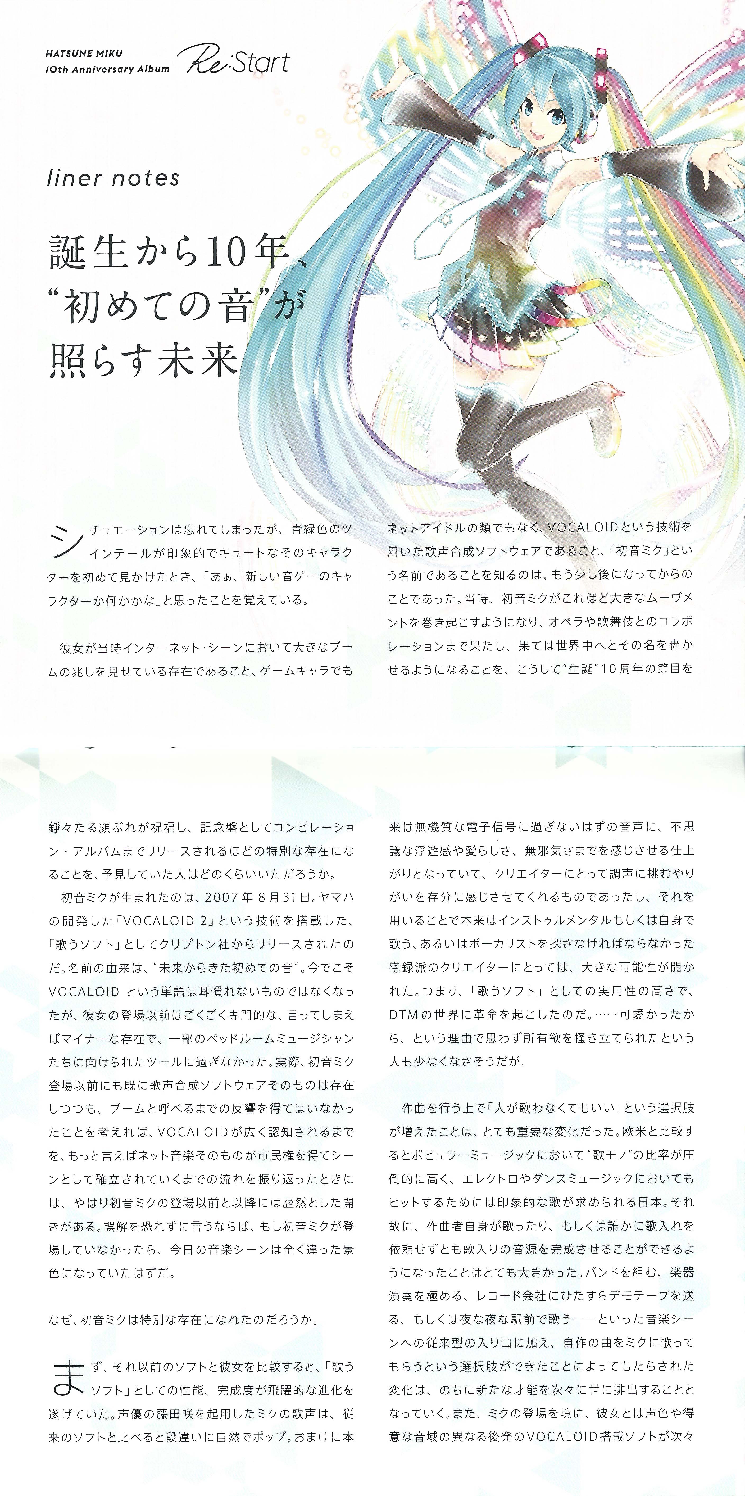 HATSUNE MIKU 10th Anniversary Album "Re:Start"