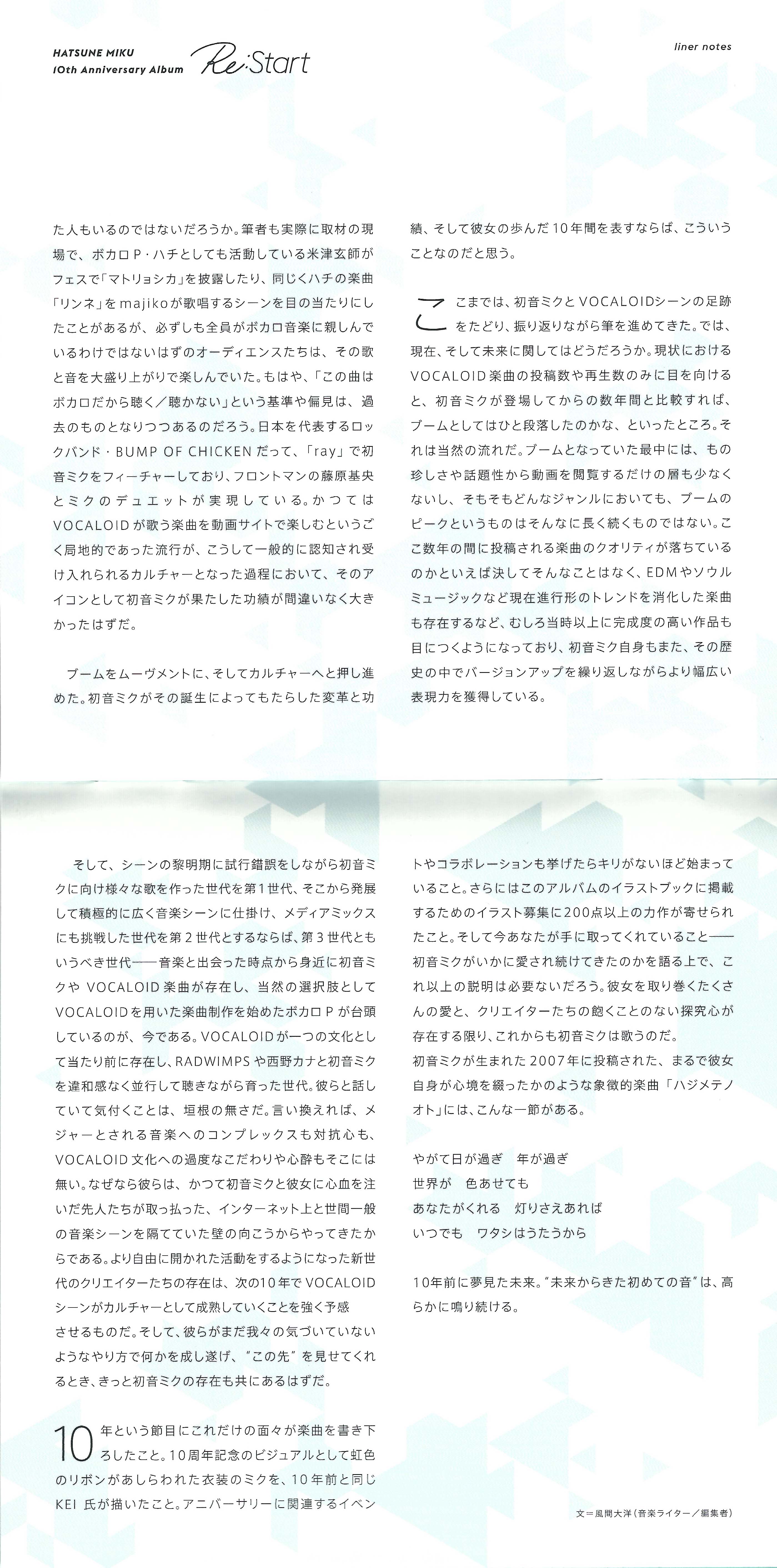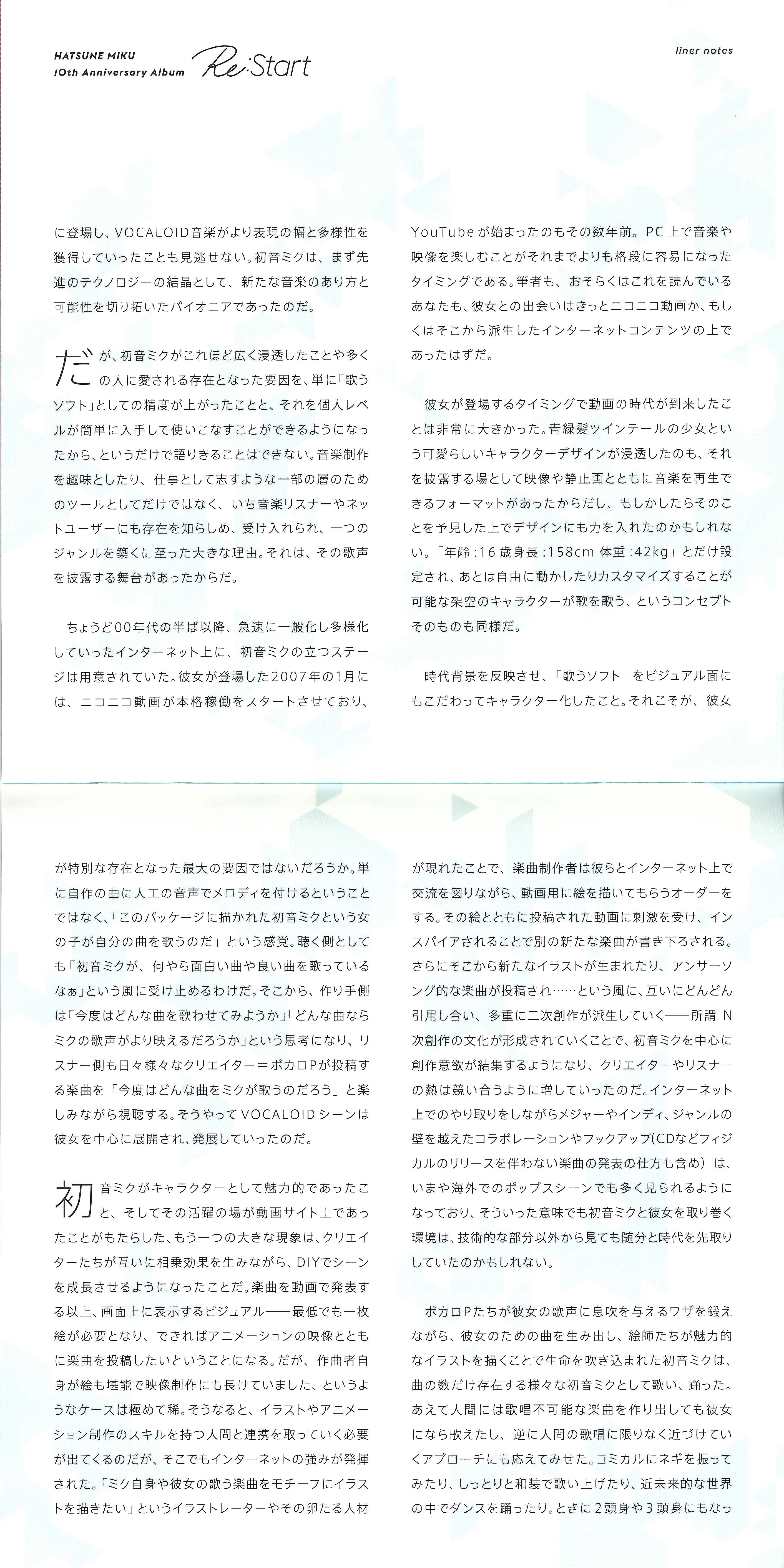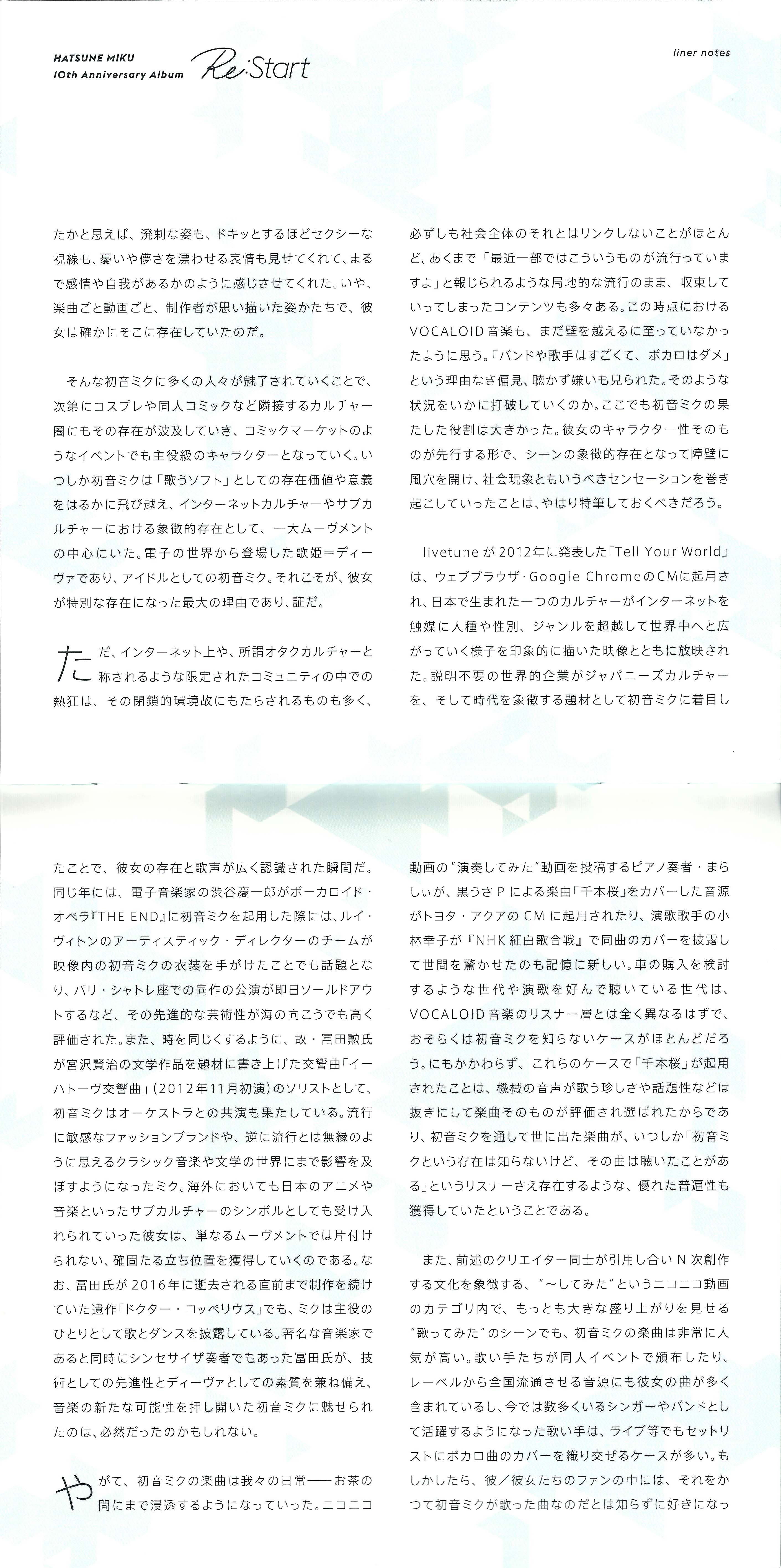 HATSUNE MIKU 10th Anniversary Album "Re:Start"