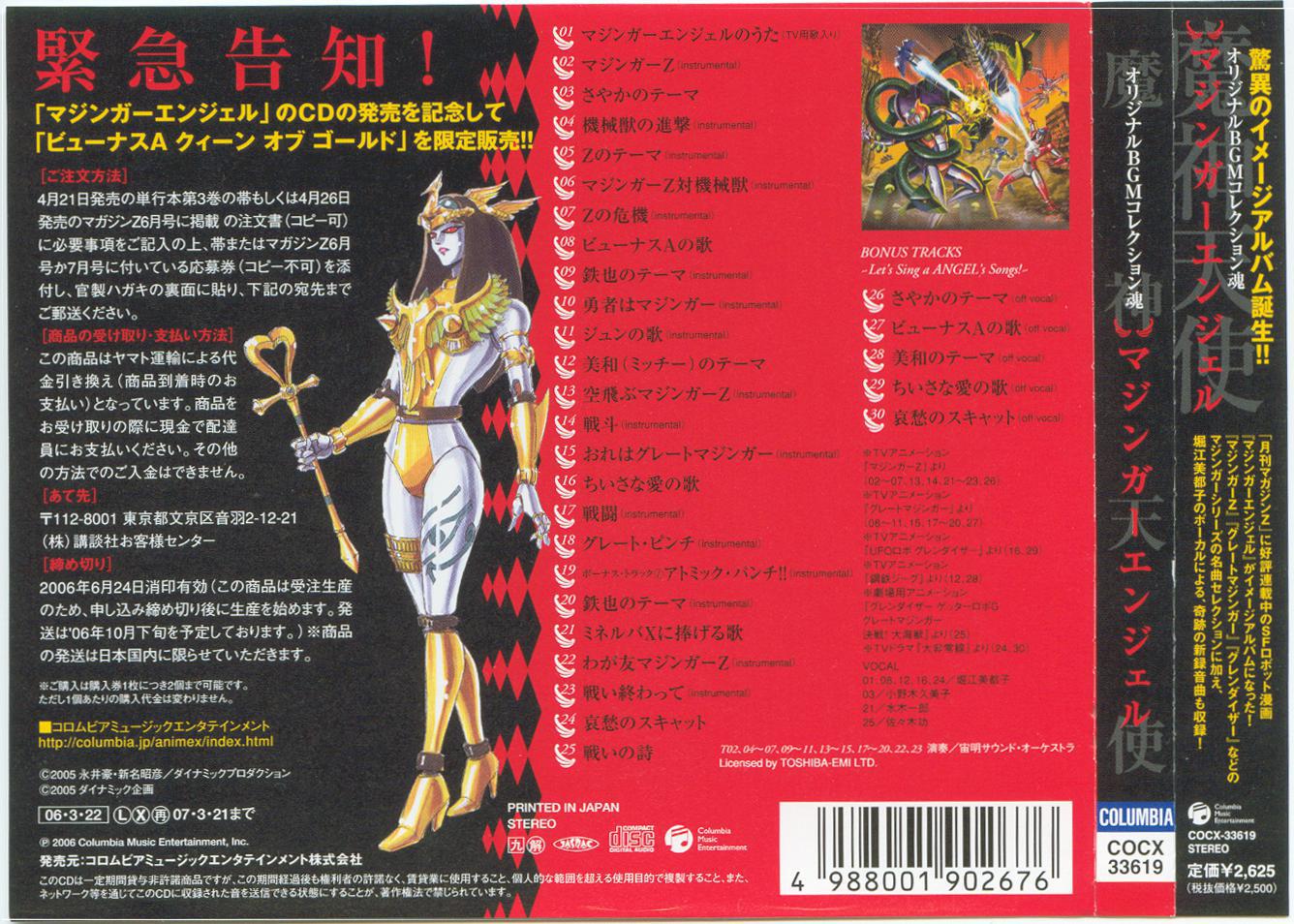 | 1 | 01.マジンガーエンジェルのうた(TV用歌入り) | 01:50 | |