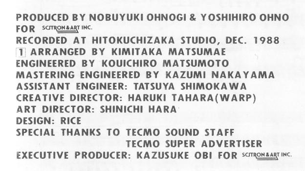 Записано на студии Hitokuchizaka Studio, Dec. 1988