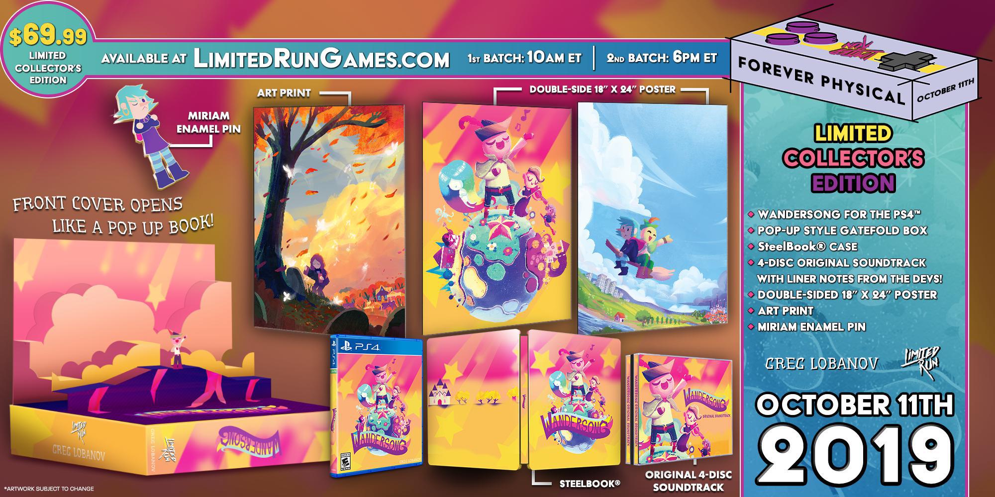 Саундтрек на 4-х дисках идёт в комплекте с "Limited Run #300: Wandersong Pop-up Edition" & "Switch Limited Run #49: Wandersong Pop-up Edition" для PS4 & NS.