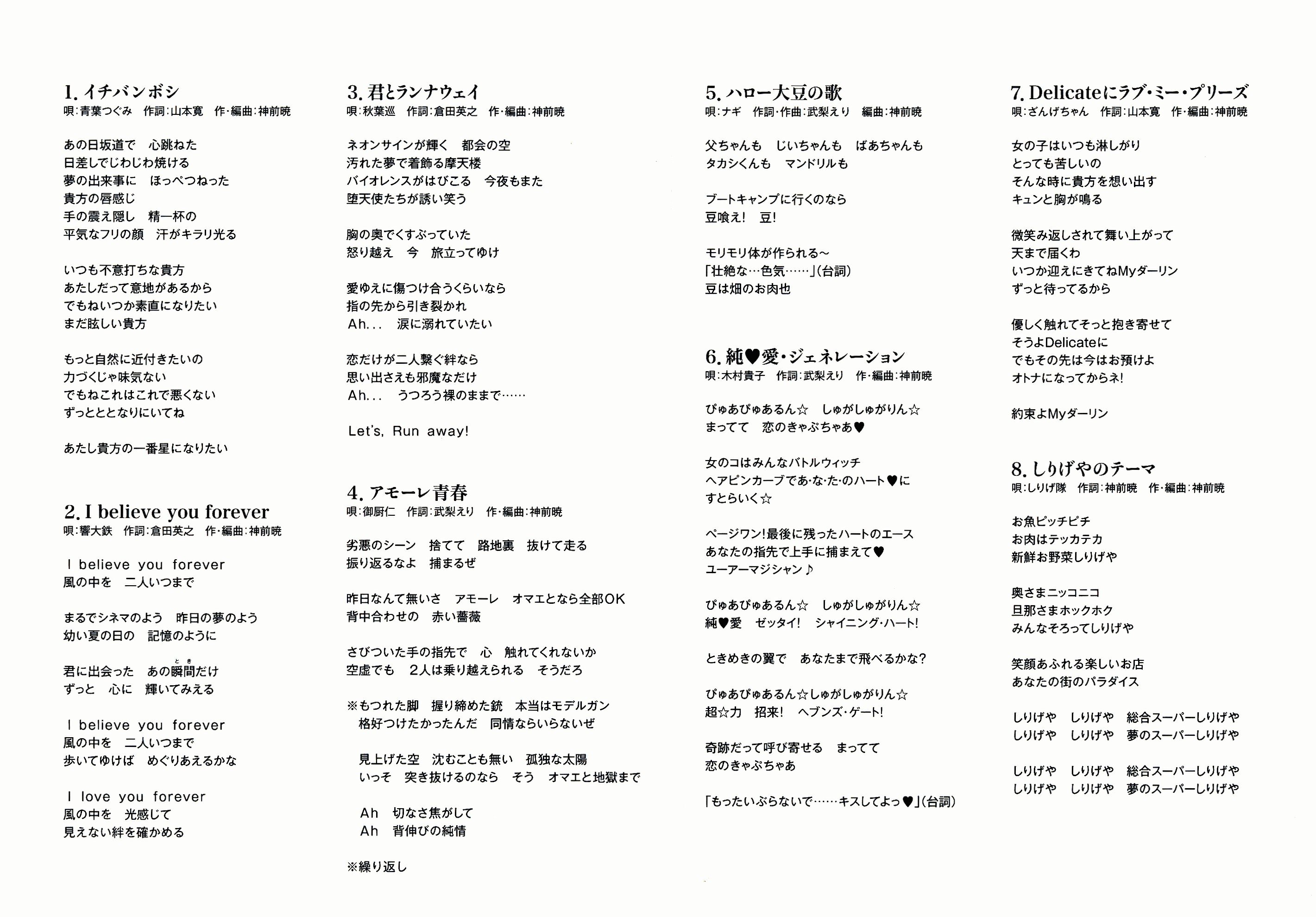 | 10 | I believe you forever -カラオケバージョン- | 01:46 | |
