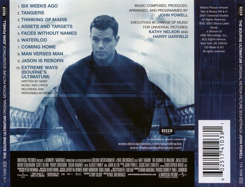 | 10 | "Extreme Ways (Bourne's Ultimatum)"Moby | 04:22 | ![]() |