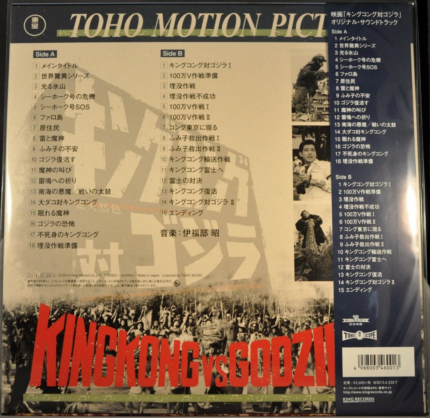 180g limited edition analog record commemorating the 100th anniversary of Akira Ifukube's birth and 60th anniversary of Godzilla's birth. First complete recording of the original soundtrack of the third work "King Kong vs. Godzilla". The sound source is the stereo sound source recorded at the time in 35mm magnetic film for multi-dimensional stereophonic screening!