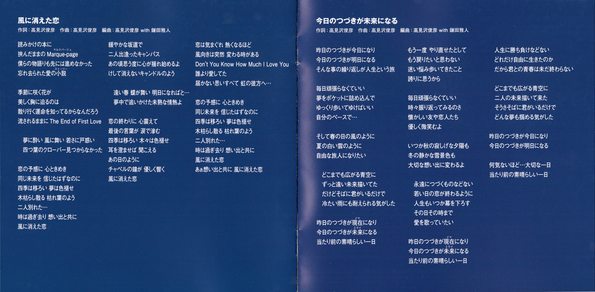 All Lyrics by Toshihiko Takamizawa (except M2.03 / M2.06 by Masako Arikawa)