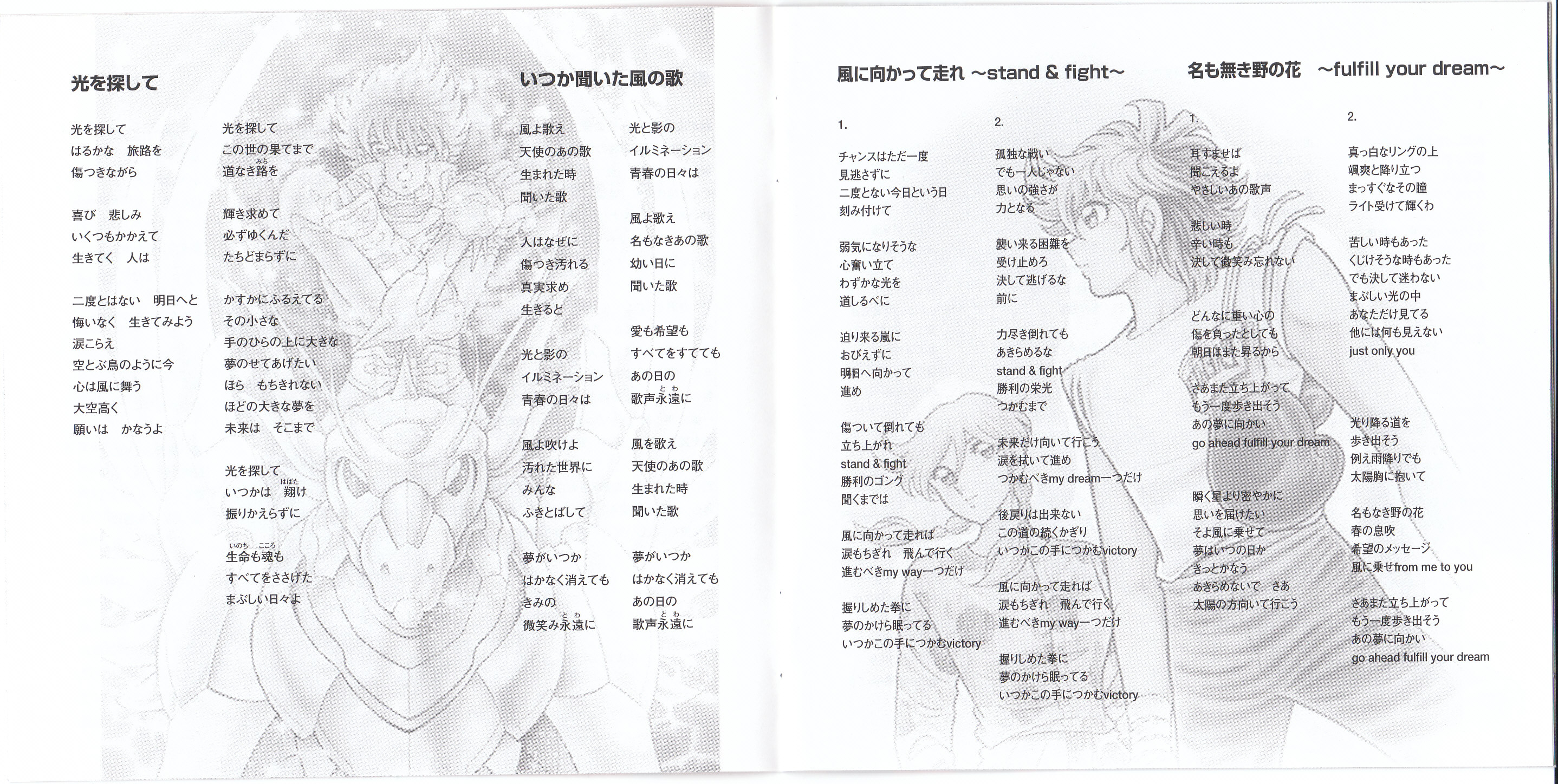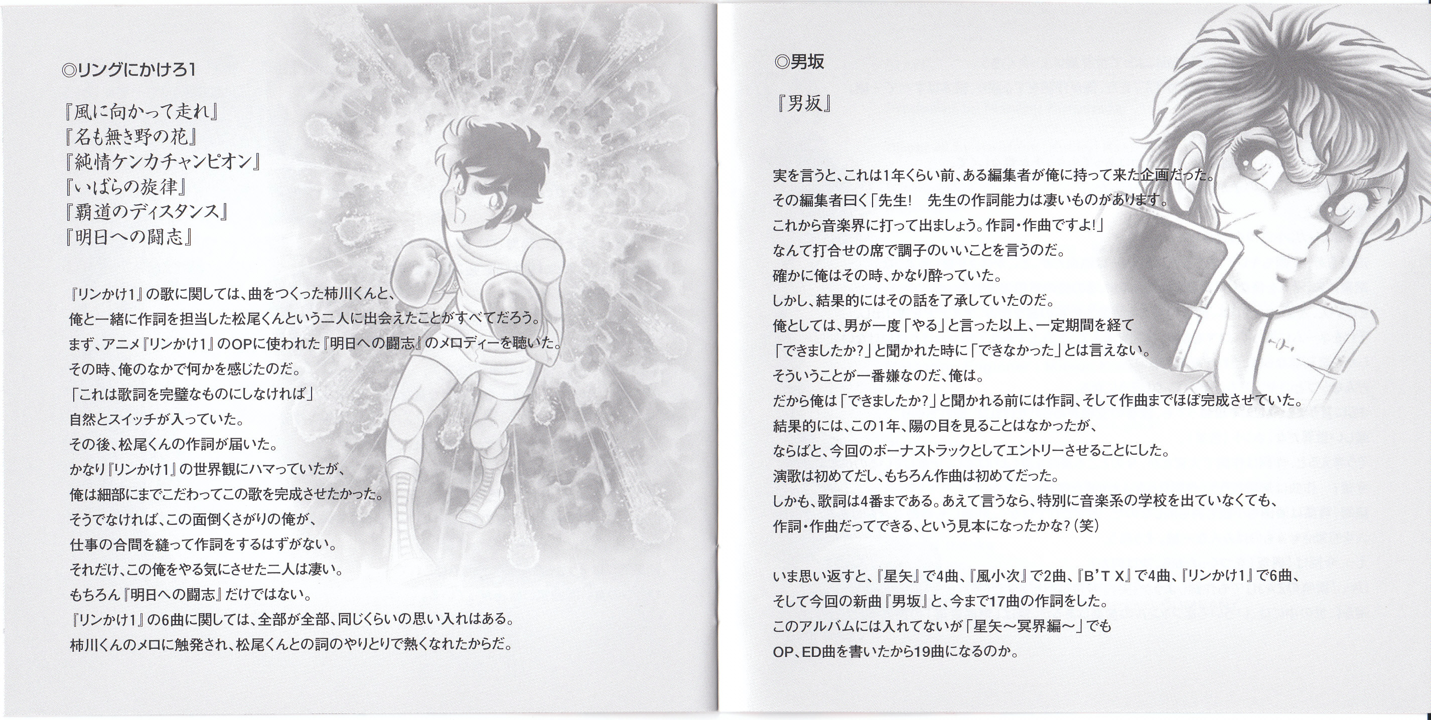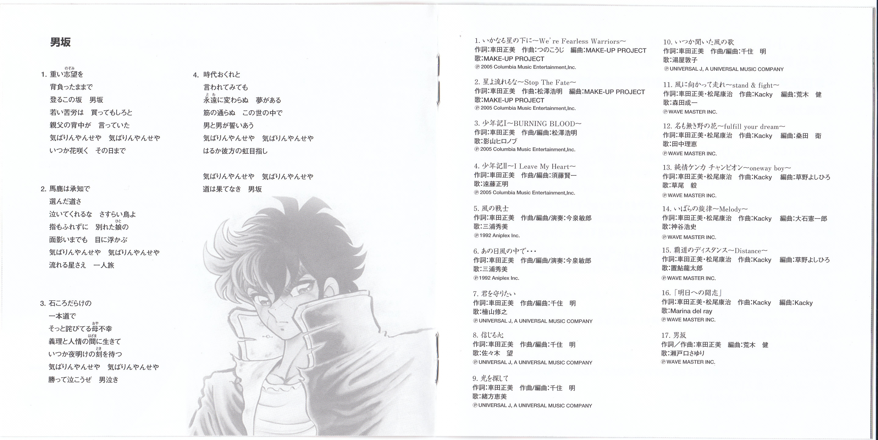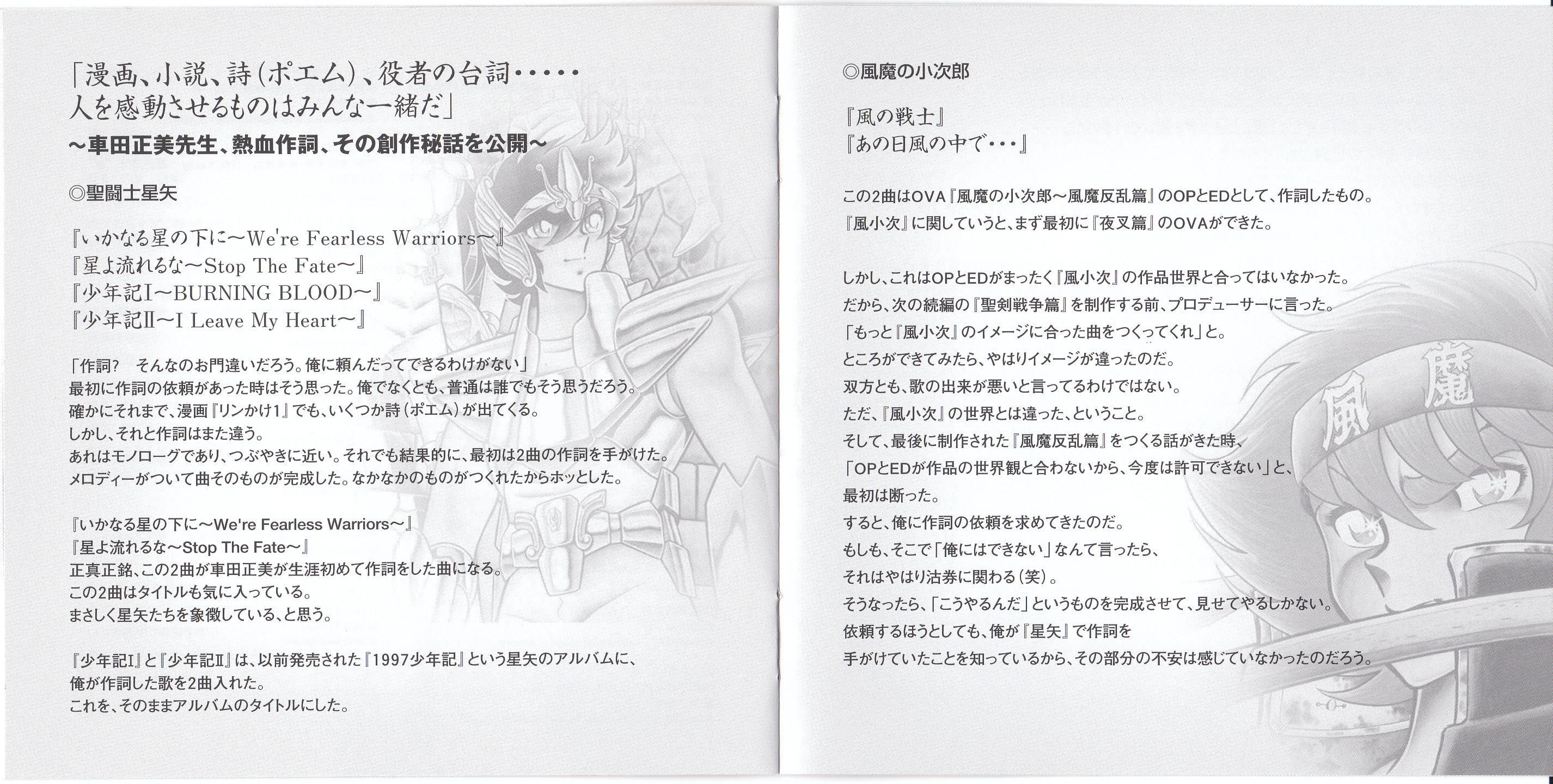 Compilation of songs from various animes based on the works of manga artist Masami Kurumada. Lyrics for each song are written by the author.