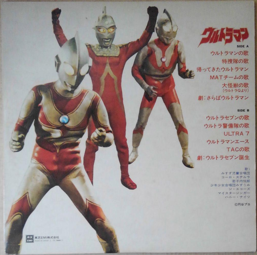 *later confirmed on "Tsuburaya Productions Early Days Chronicle" [VPCD-81334~9] album notes, original wrong credit to Misuzu Boys Chorus, confirmed on JASRAC and Toshiba herself on some compilations as TOCT-8794 and TYCY-10041~2.