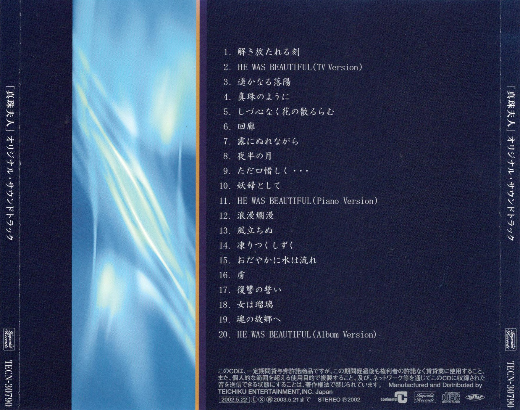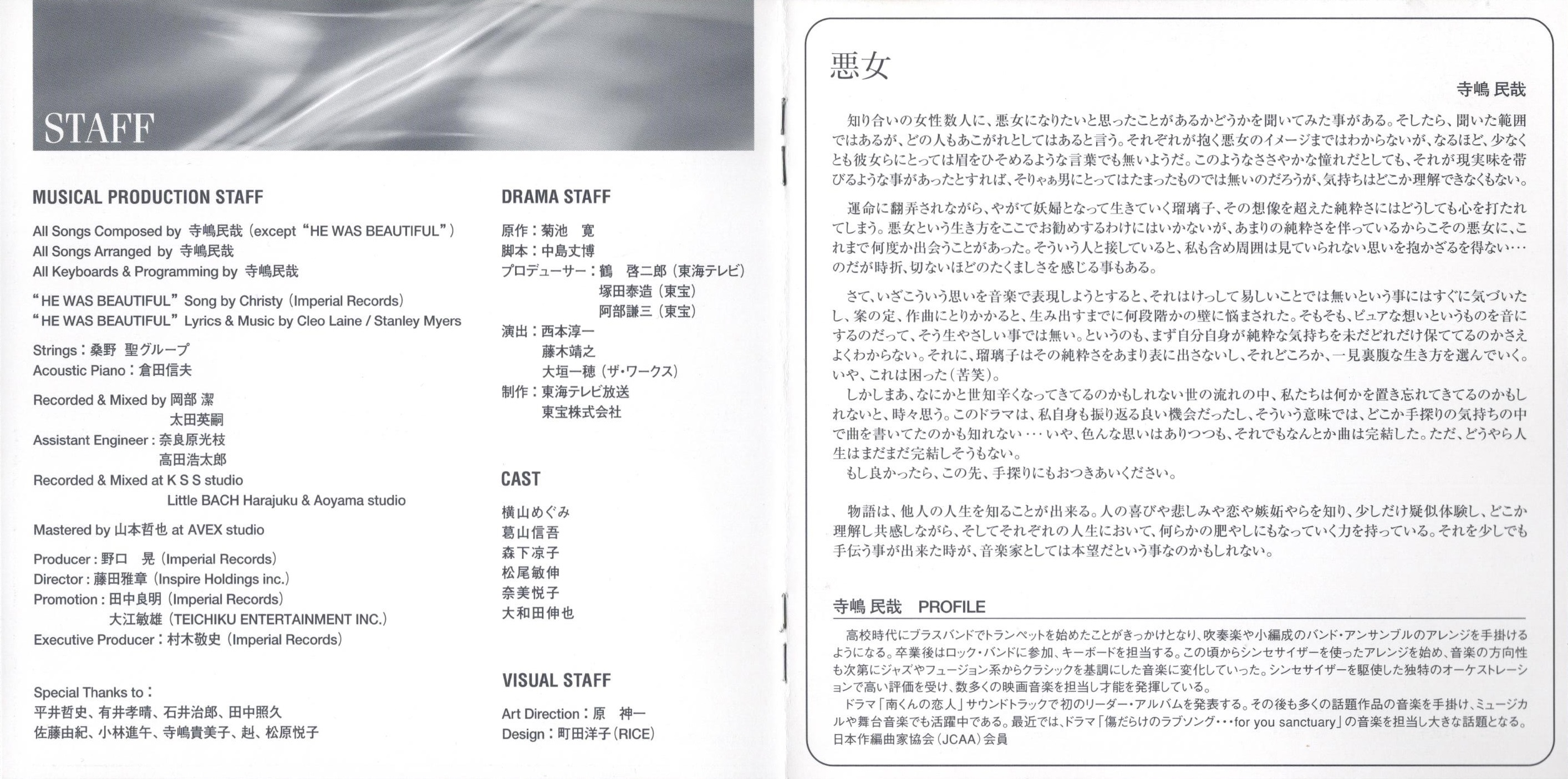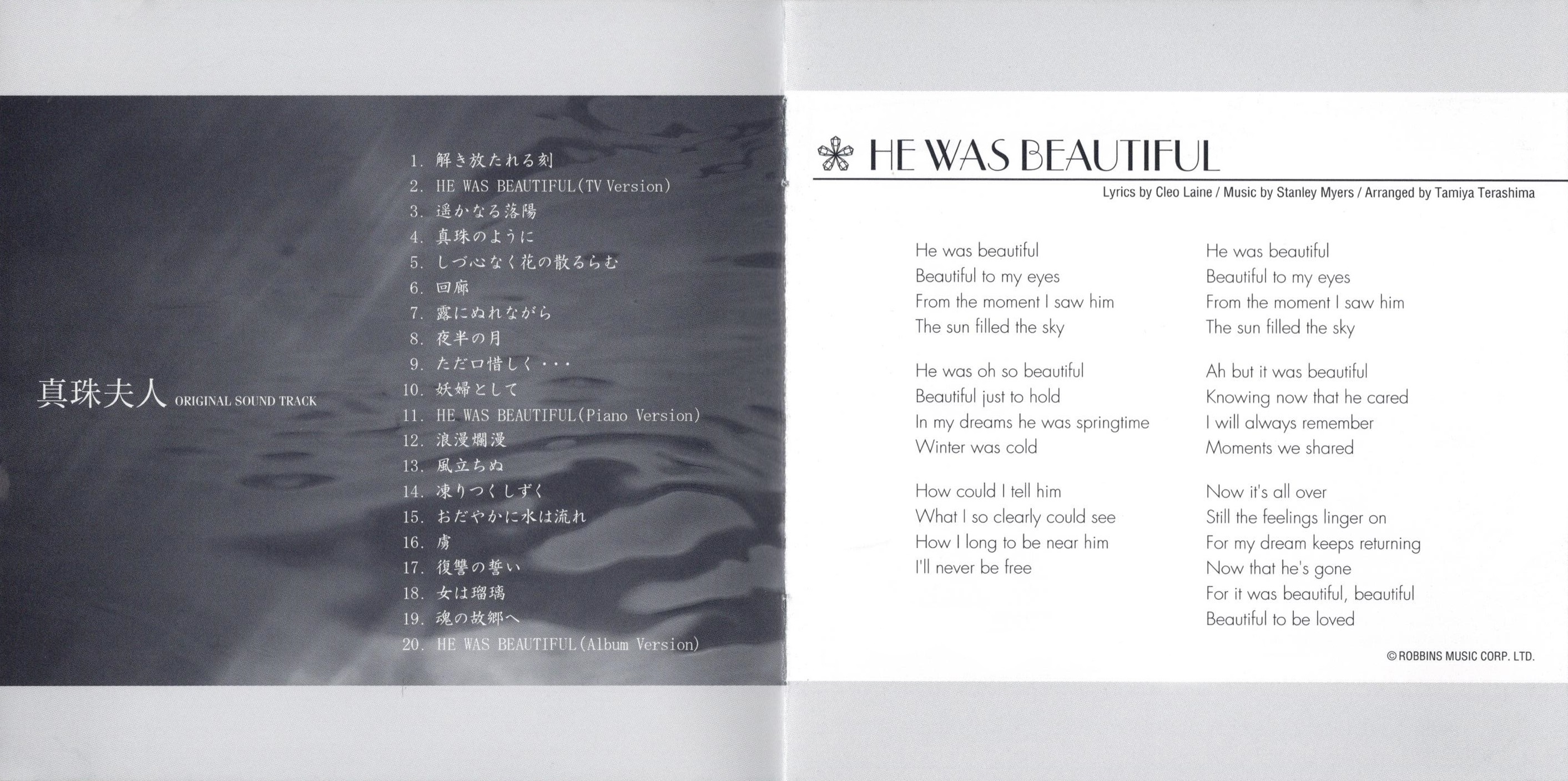 All Songs Composed by Tamiya Terashima (except "HE WAS BEAUTIFUL")