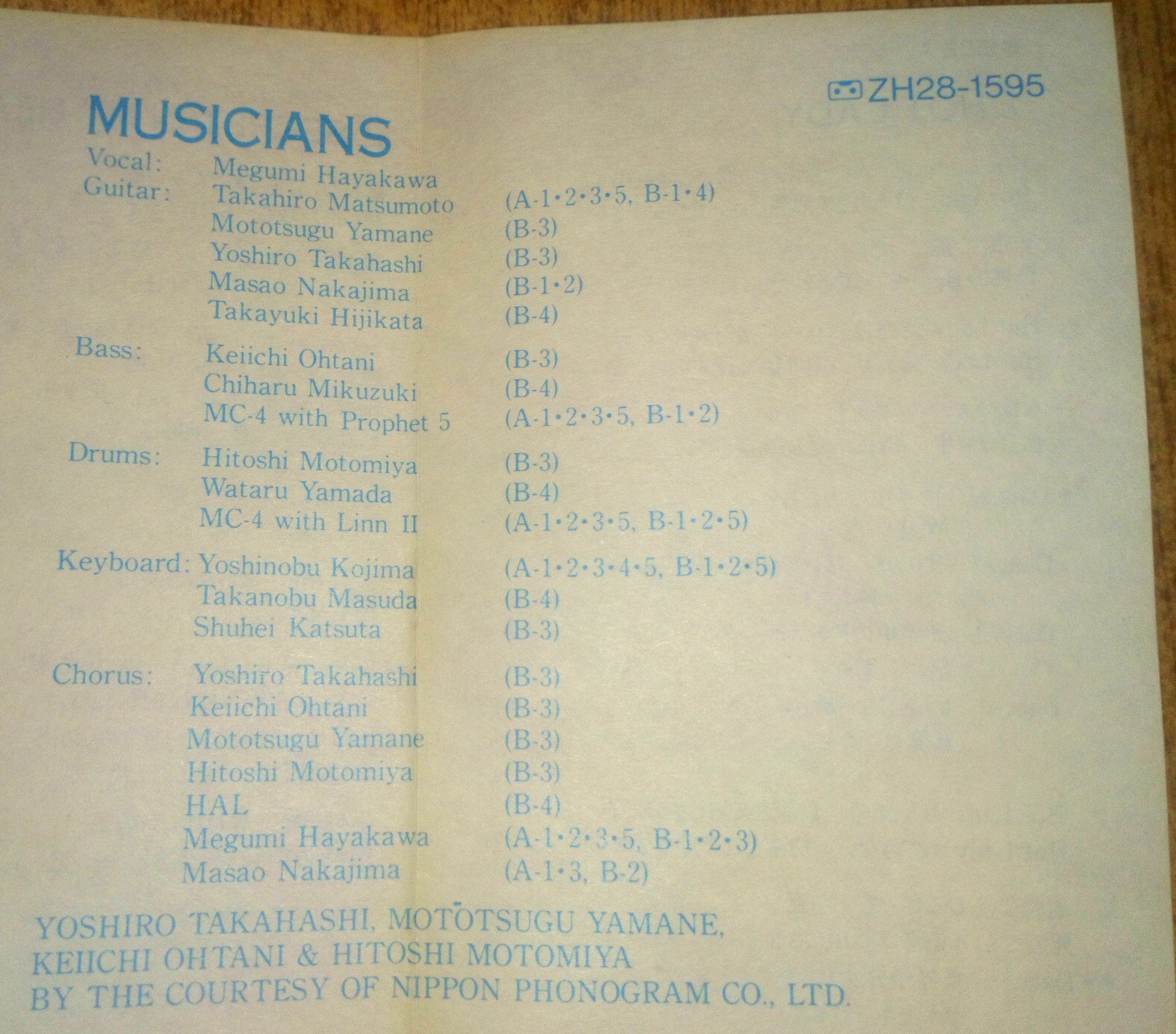 Keyboard: Yoshinobu Kojima (A-1,2,3,4,5, B-1,2,5)