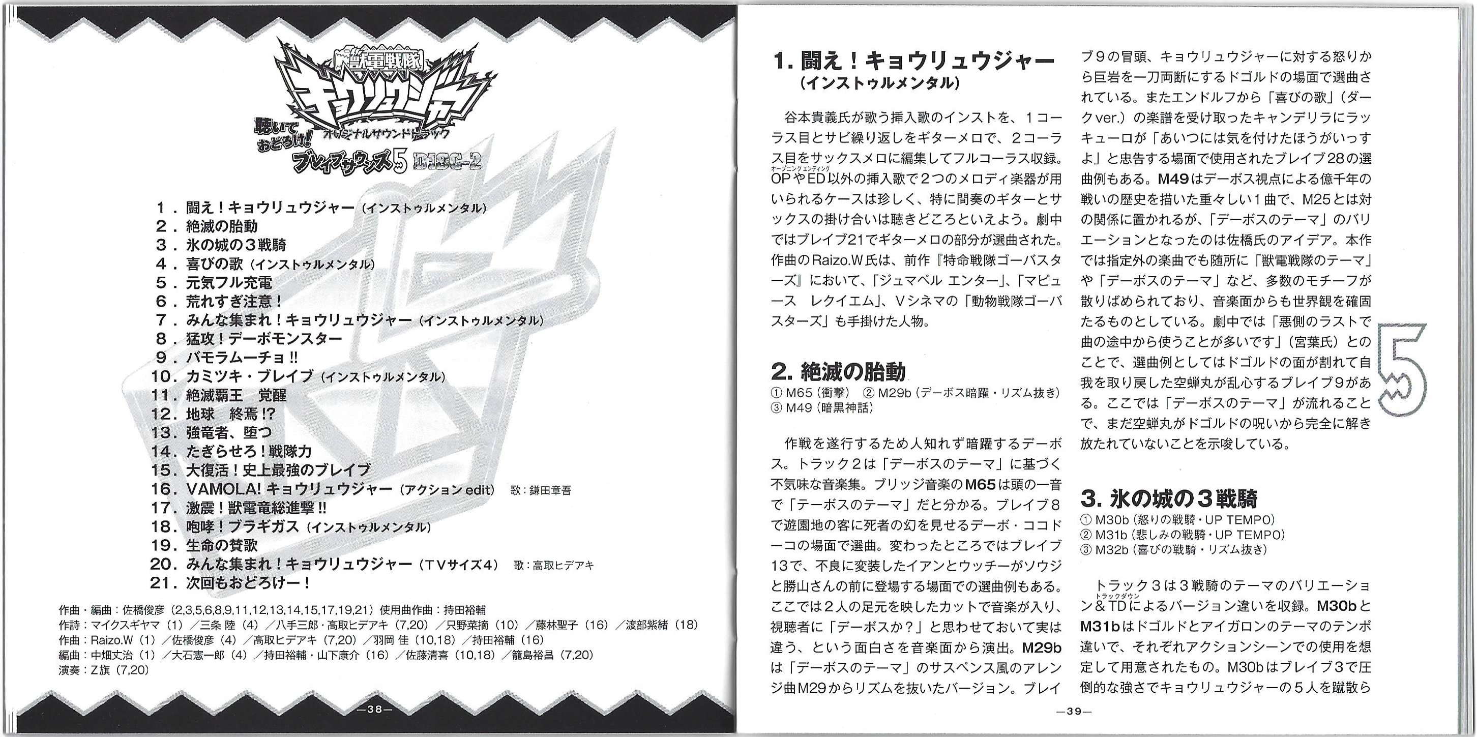 Composed by: Raizo.W (1)/Toshihiko Sahashi (4)/Hideaki Takatori (7,20)/Kei Haneoka (10,18)/Yousuke Mochida (16)
