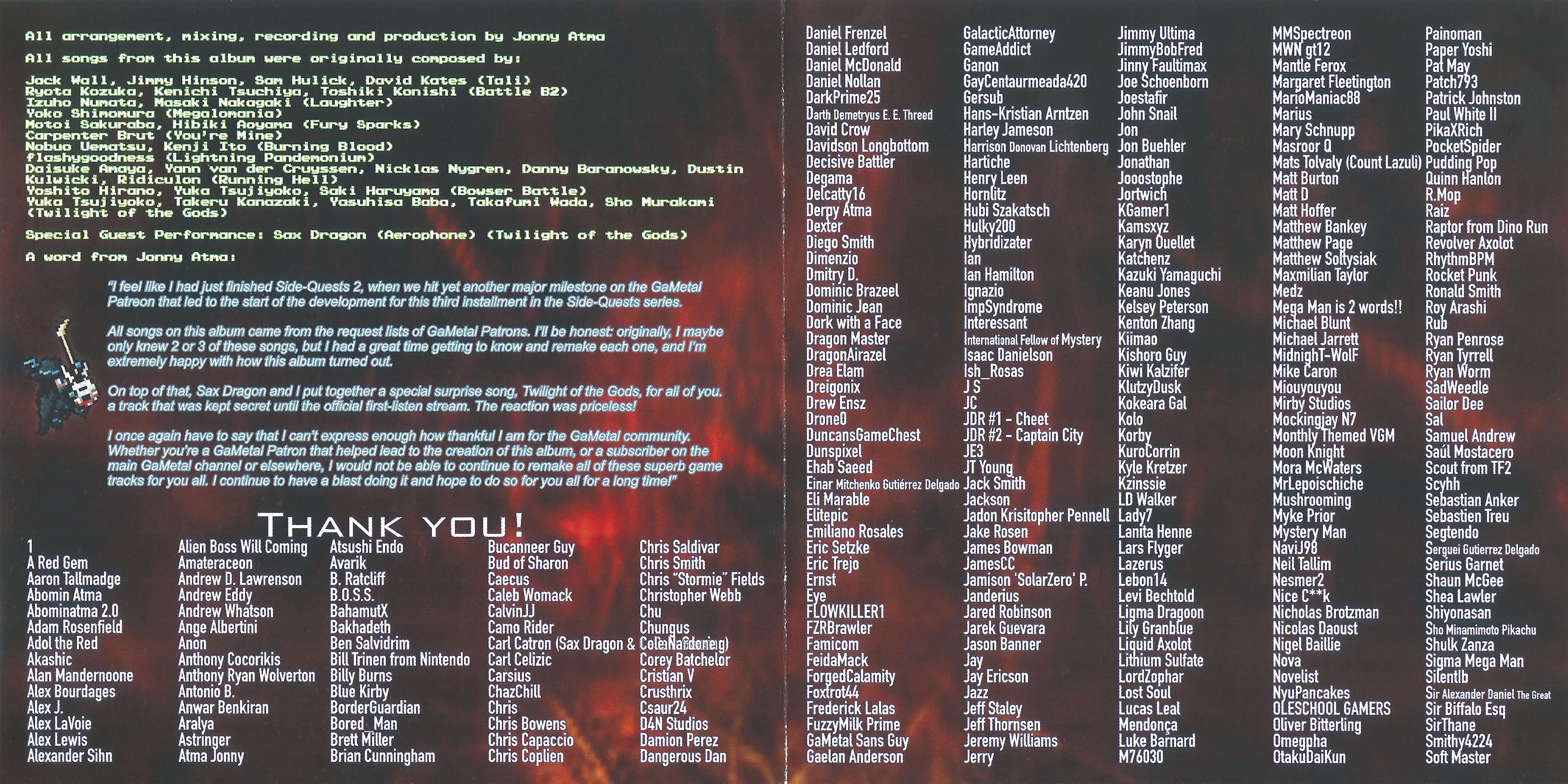 The Side-Quests albums are comprised of 10 songs randomly chosen from the GaMetal Patreon request list to celebrate milestone goals we have reached.