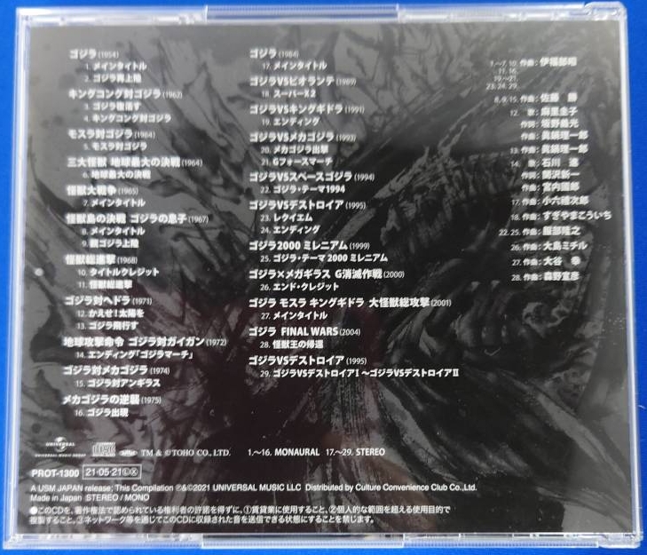 A definitive compilation album that traces the history of Godzilla music from 1954 to 2004.