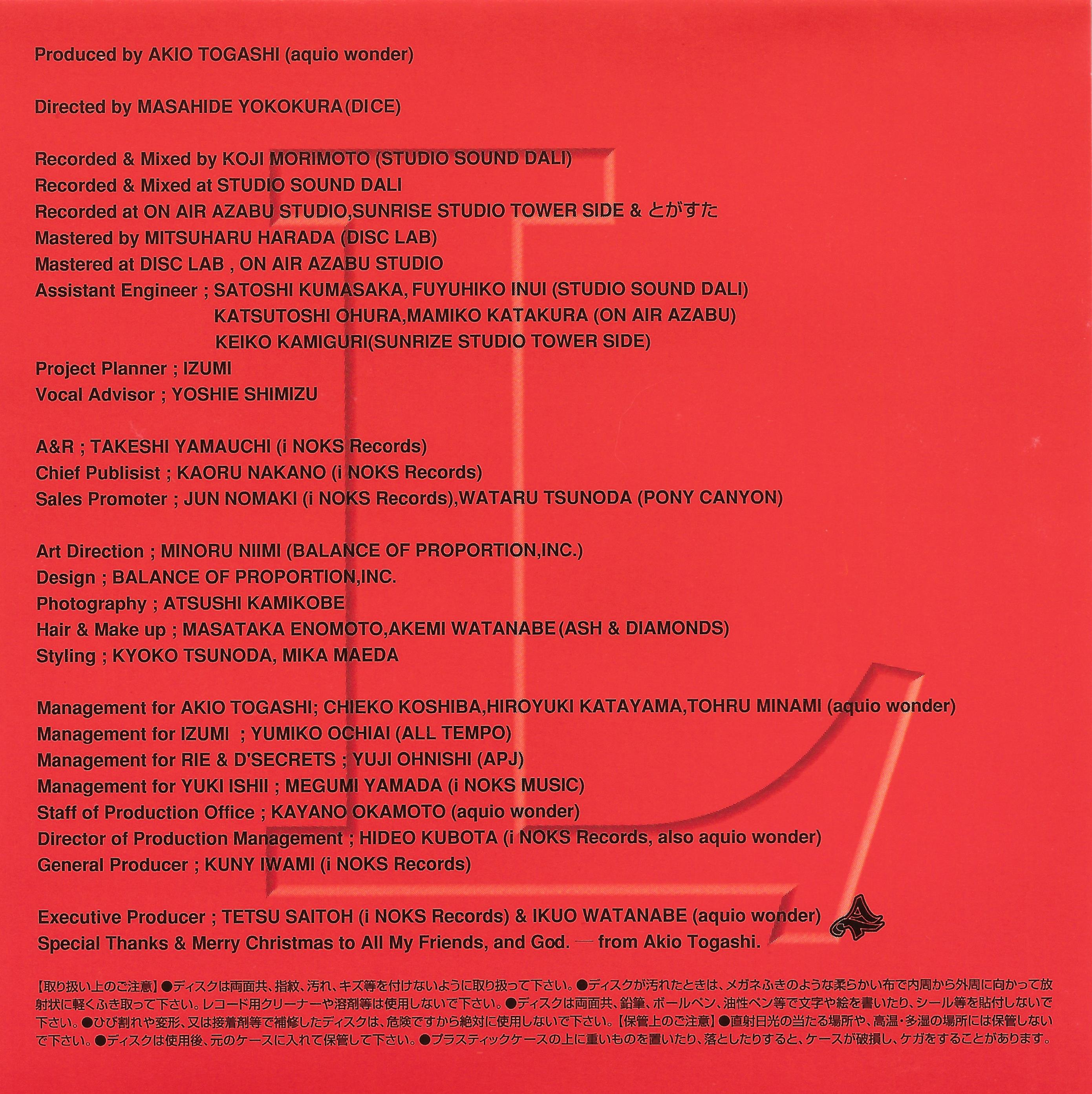 Mastered at DISC LAB , ON AIR AZABU STUDIO