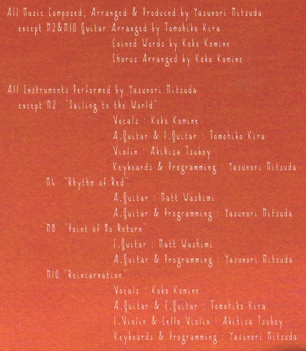 Все треки записаны и сведены Yasunori Mitsuda, за исключением треков 2 и 10 -- записаны и сведены Kenzi Magashima