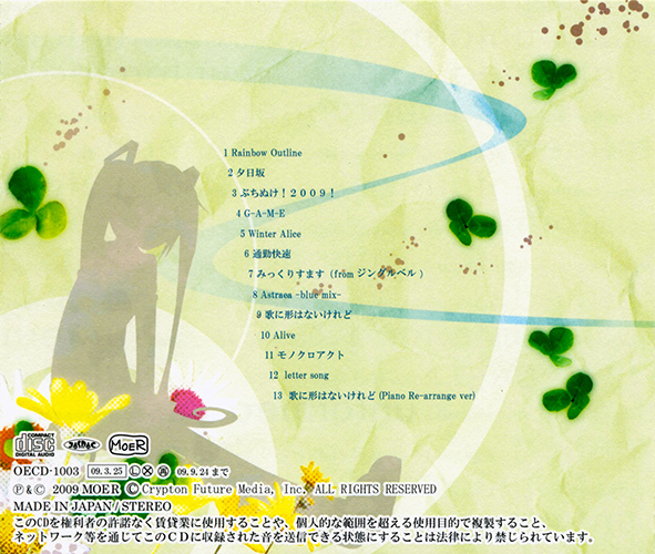 All songs, lyrics(except M4 lyric, M7 song & lyric) & arranged by doriko
