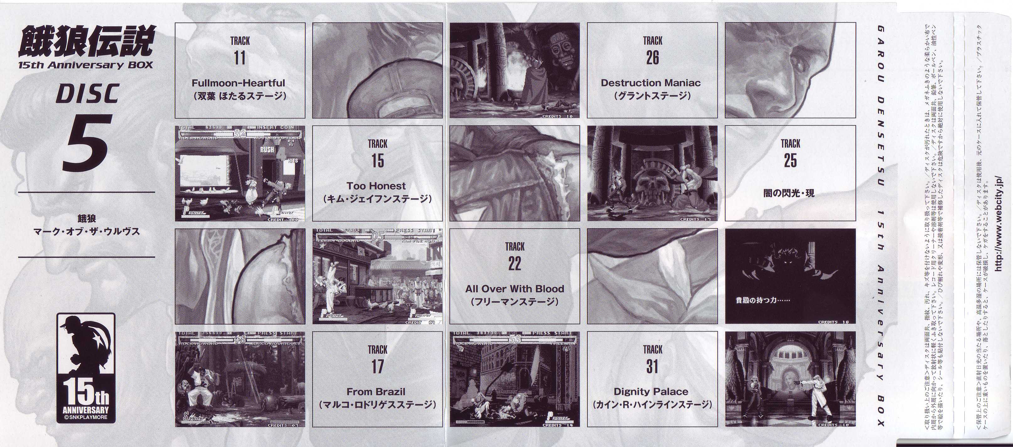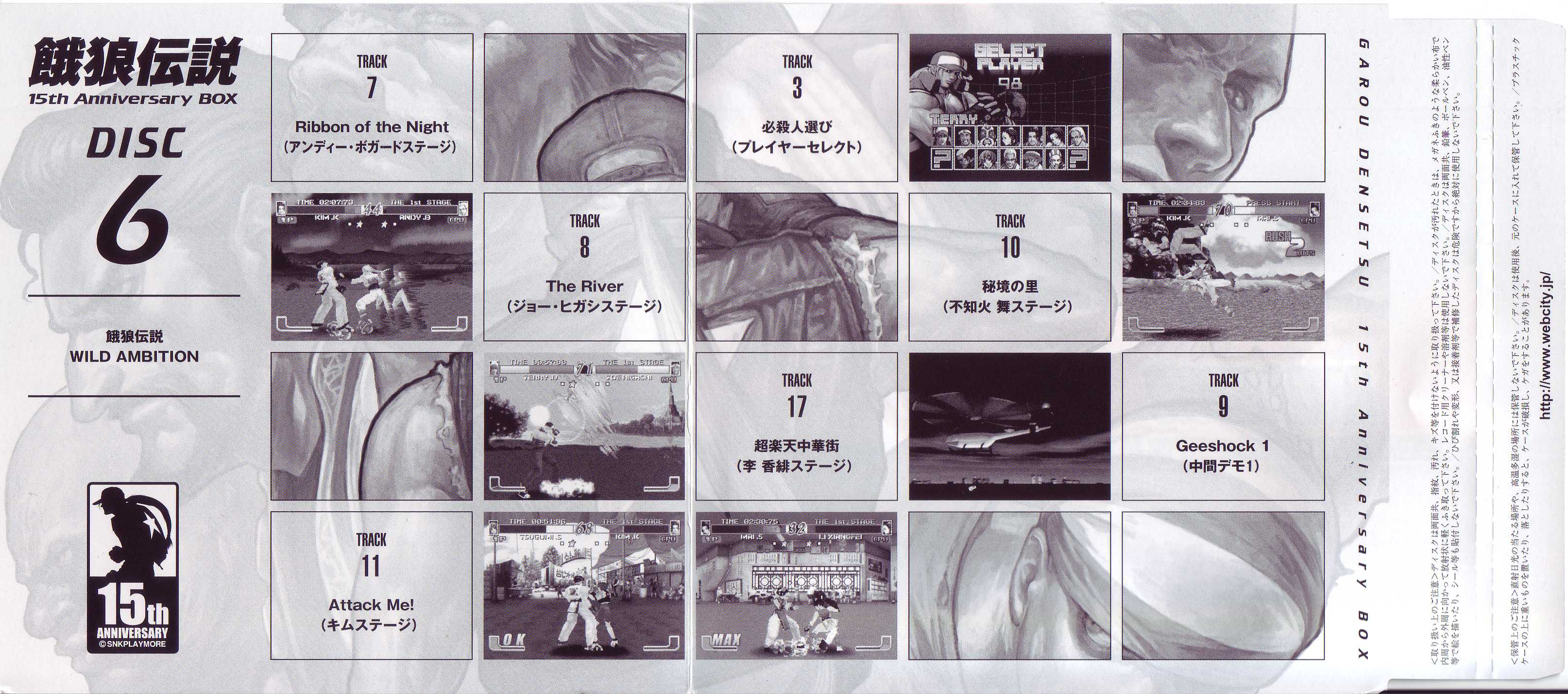 This 6-Disc Boxset contains the complete soundtracks to the legendary "Fatal Fury (Garou Densetsu)" series of fighting games from SNK.