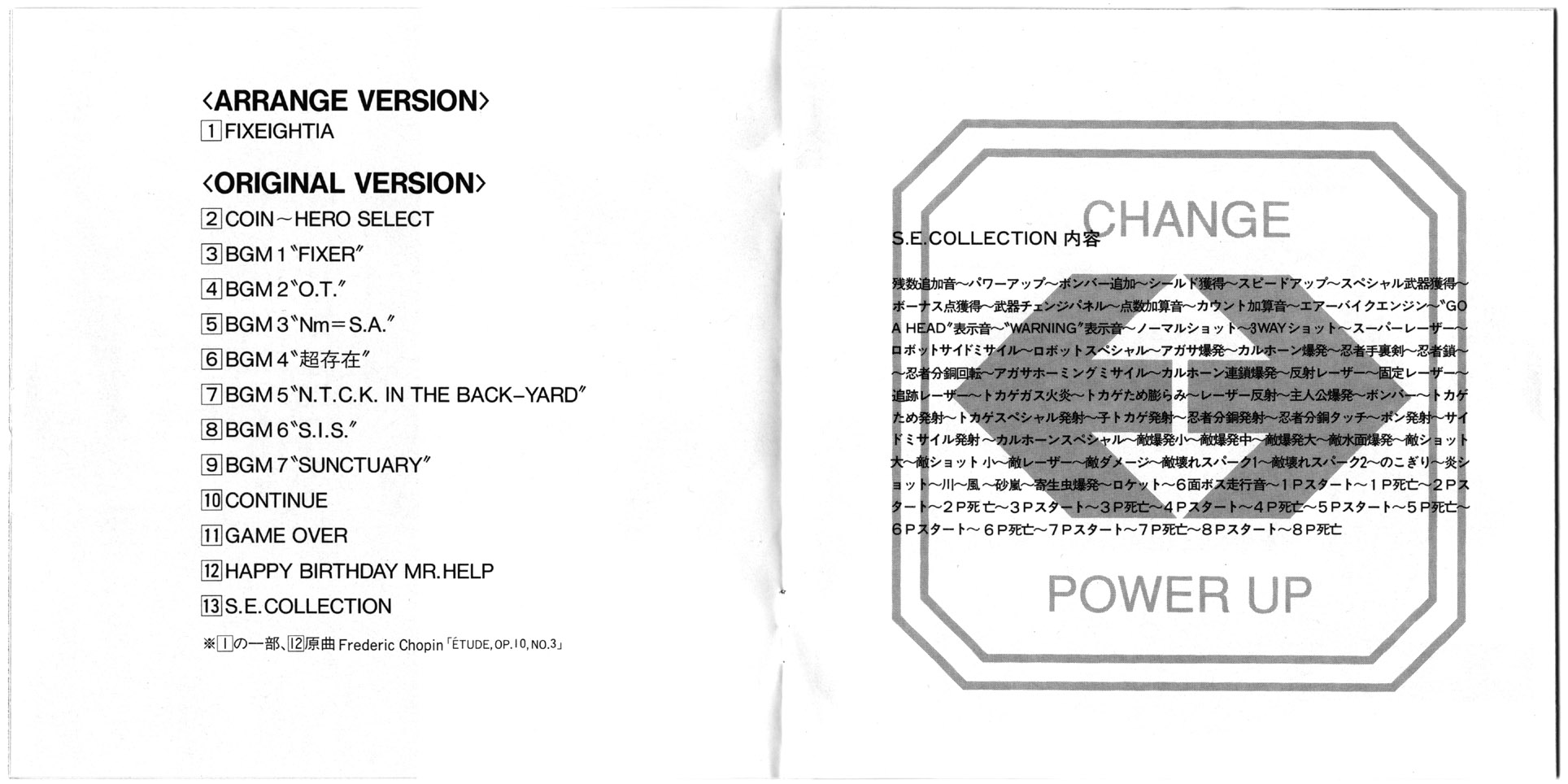 Track 12 is an arrangement of Chopin's Étude Op. 10, No. 3.