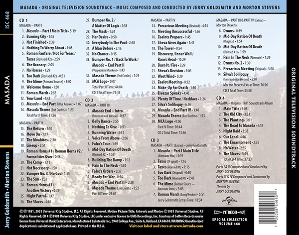 | 1 | Masada - Part I Main TitleJerry Goldsmith | 05:19 | |