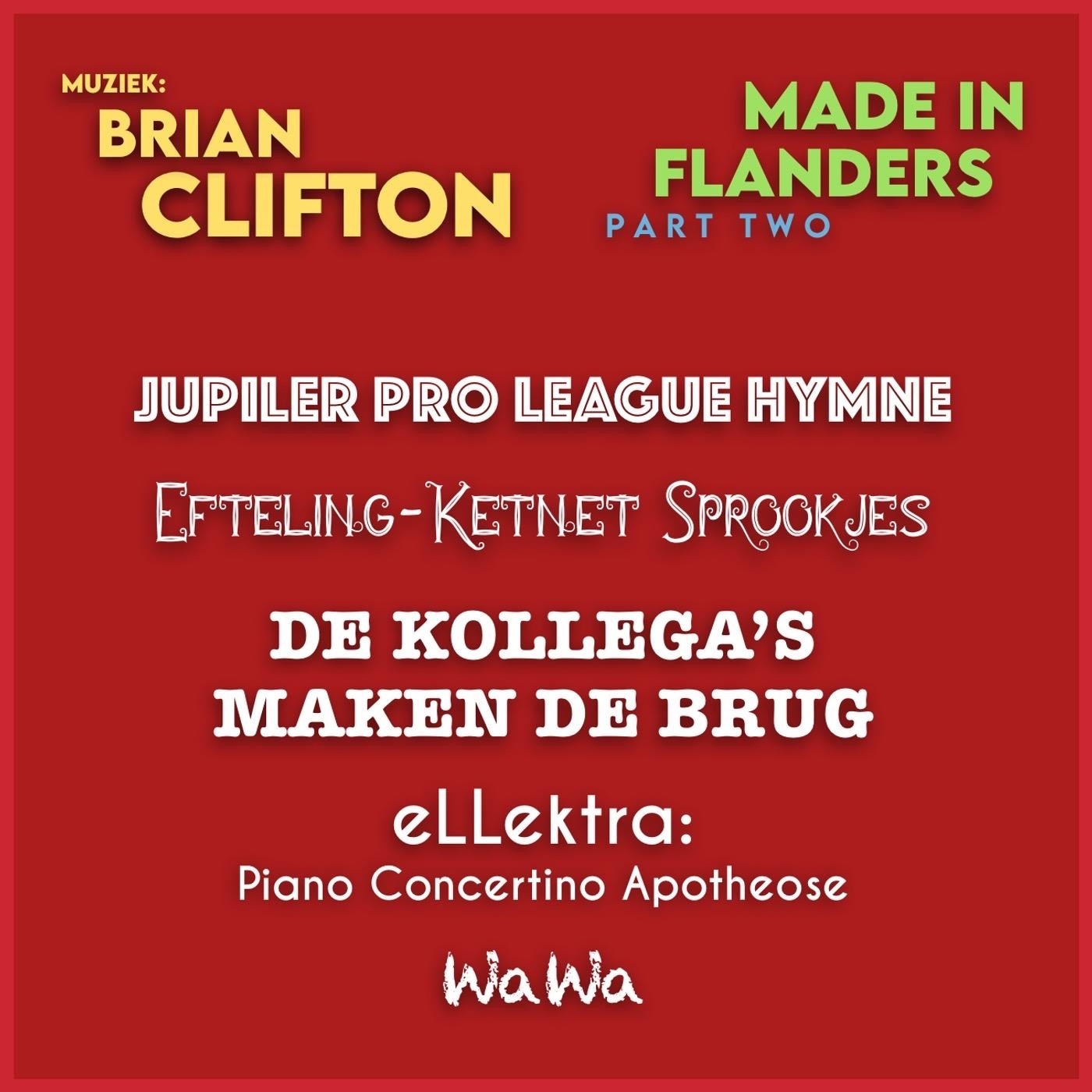 Ниже можно послушать бесплатное онлайн превью треков из саундтрека Made In Flanders, Pt. Two . Над альбомом работал композитор Brian Clifton (Dimitri Vegas & Like Mike , Suske en Wiske: De Duistere Diamant , Cruise Control ), а его релиз состоялся 10 декабря 2021 года. На саундтрек попало 27 композиций общей длительностью более часа. Подборка является компиляцией оригинальной музыки. Выпуском пластинки занимался лейбл Brian Clifton . Превью альбома предоставлено iTunes . Вы можете прослушать все композиции прямо на сайте. Если вам понравился саундтрек Made In Flanders, Pt. Two , то мы настоятельно советуем купить его, поддержав таким образом композиторов, артистов и исполнителей. К тому же, это недорого. В российском сегменте iTunes он стоит всего 99 руб. Цены и магазины, где можно купить альбом, указаны в правой колонке. CD 1 1 Jupiler Pro League Hymne 2011-20 Brian Clifton 01:34