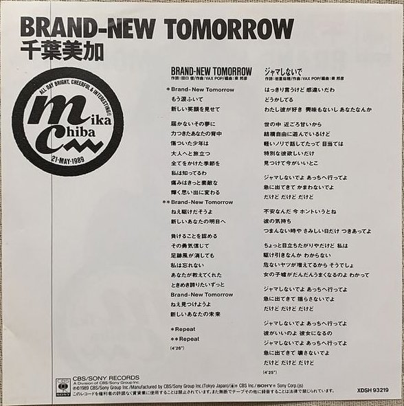 BRAND NEW-TOMORROW Coupling with: Jamashinaide / MIKA CHIBA