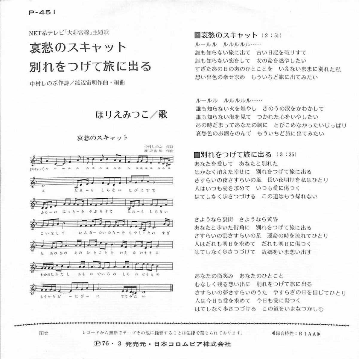 Aishuu no Scat / Mitsuko Horie